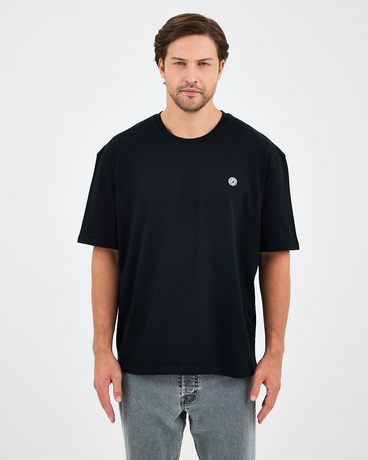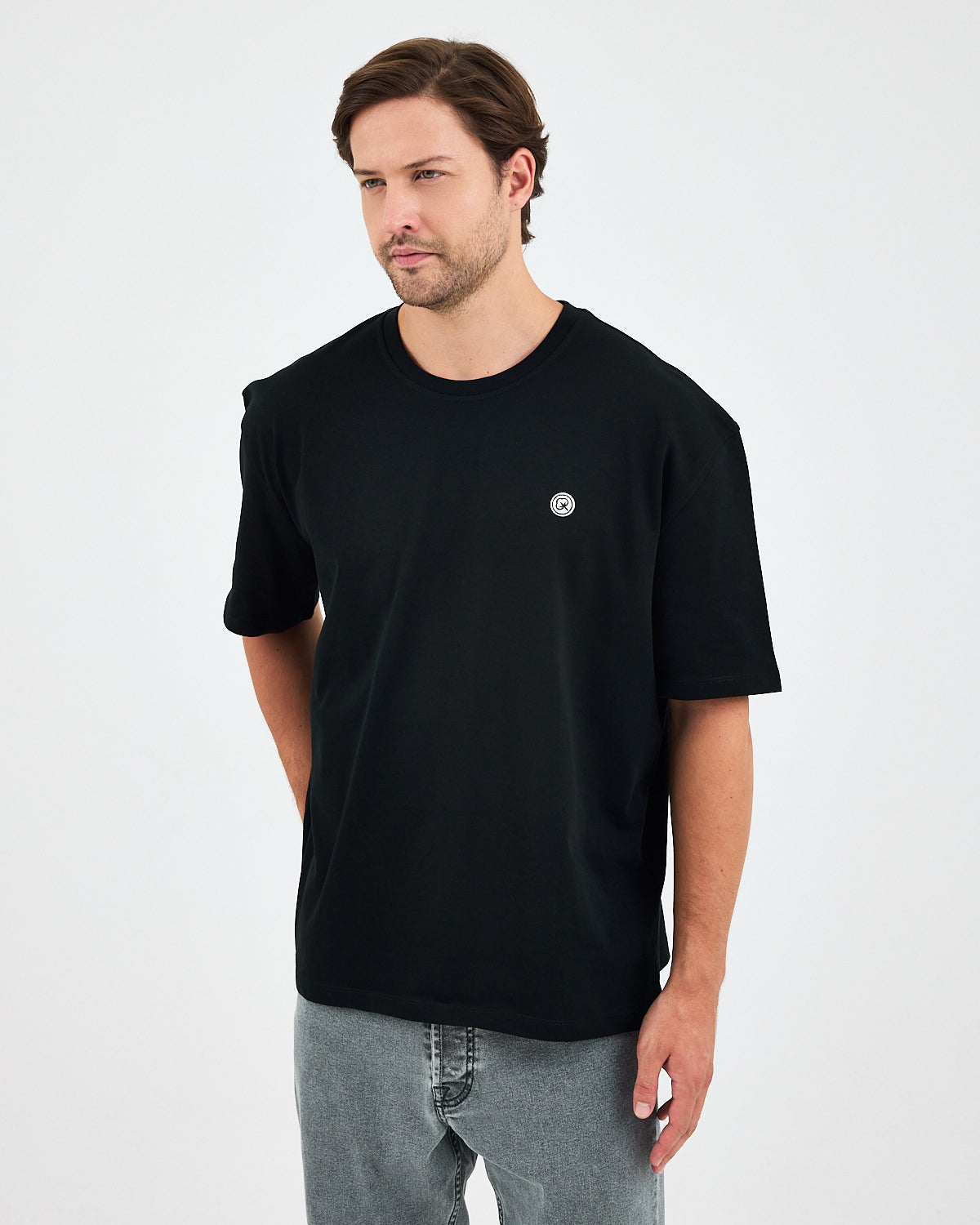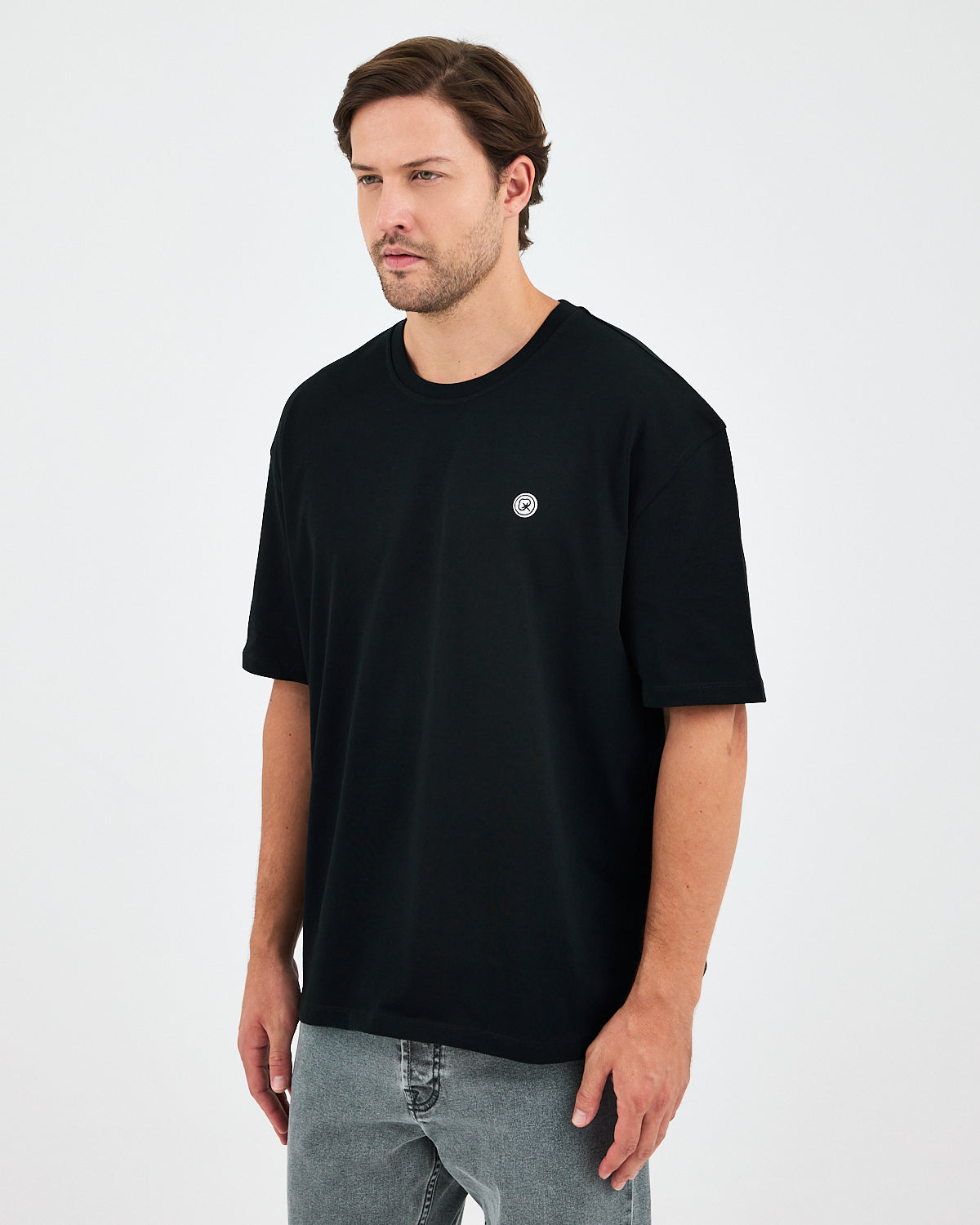 Güçlü ve zamansız siyah tonu, beyaz logo nakış detayı ile net bir kontrast oluşturur. Oversize unisex tişört, rahat kalıbı sayesinde gün boyu konfor sunarken modern ve iddialı bir stil sağlar. Günlük kombinlerde öne çıkan, sade ama etkili bir parçadır.
