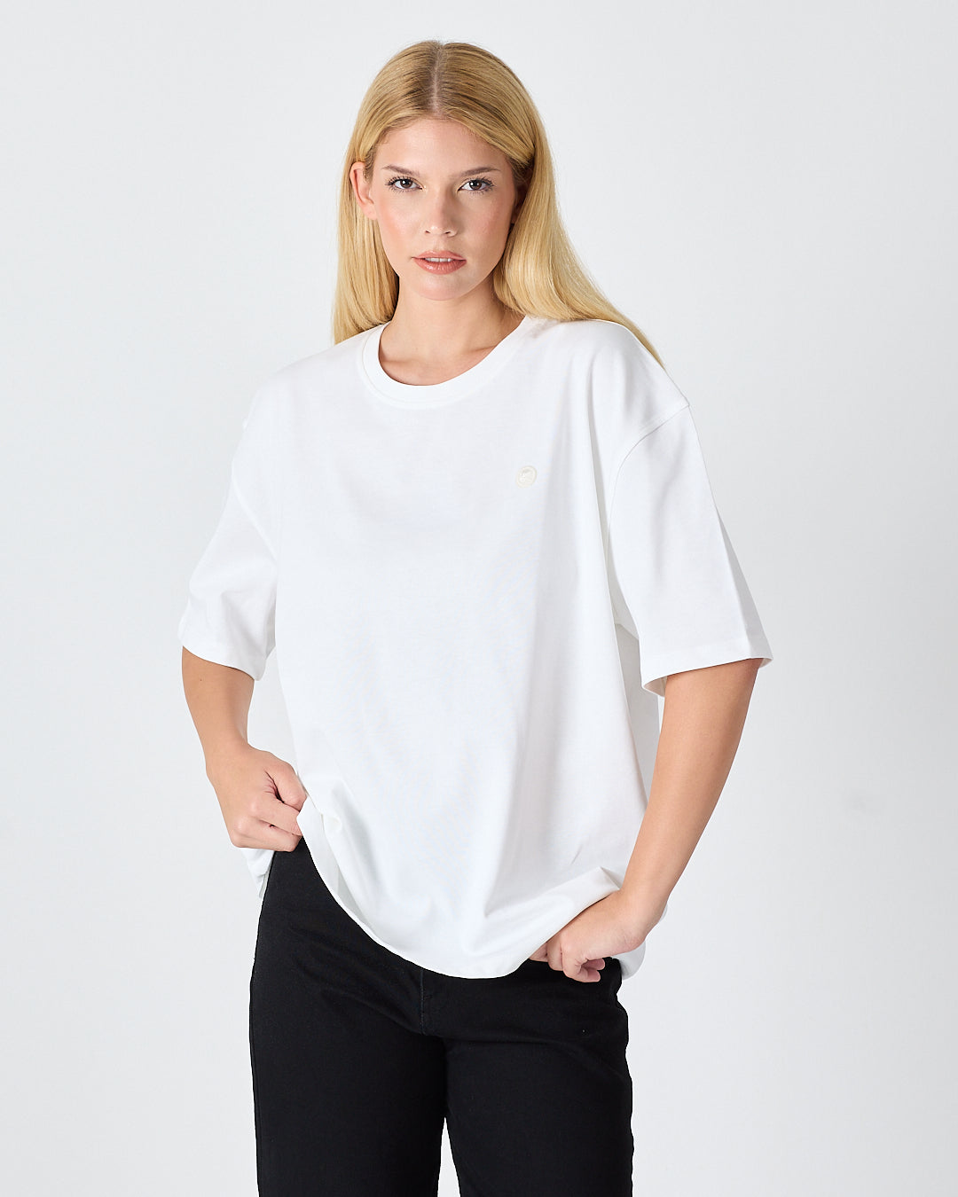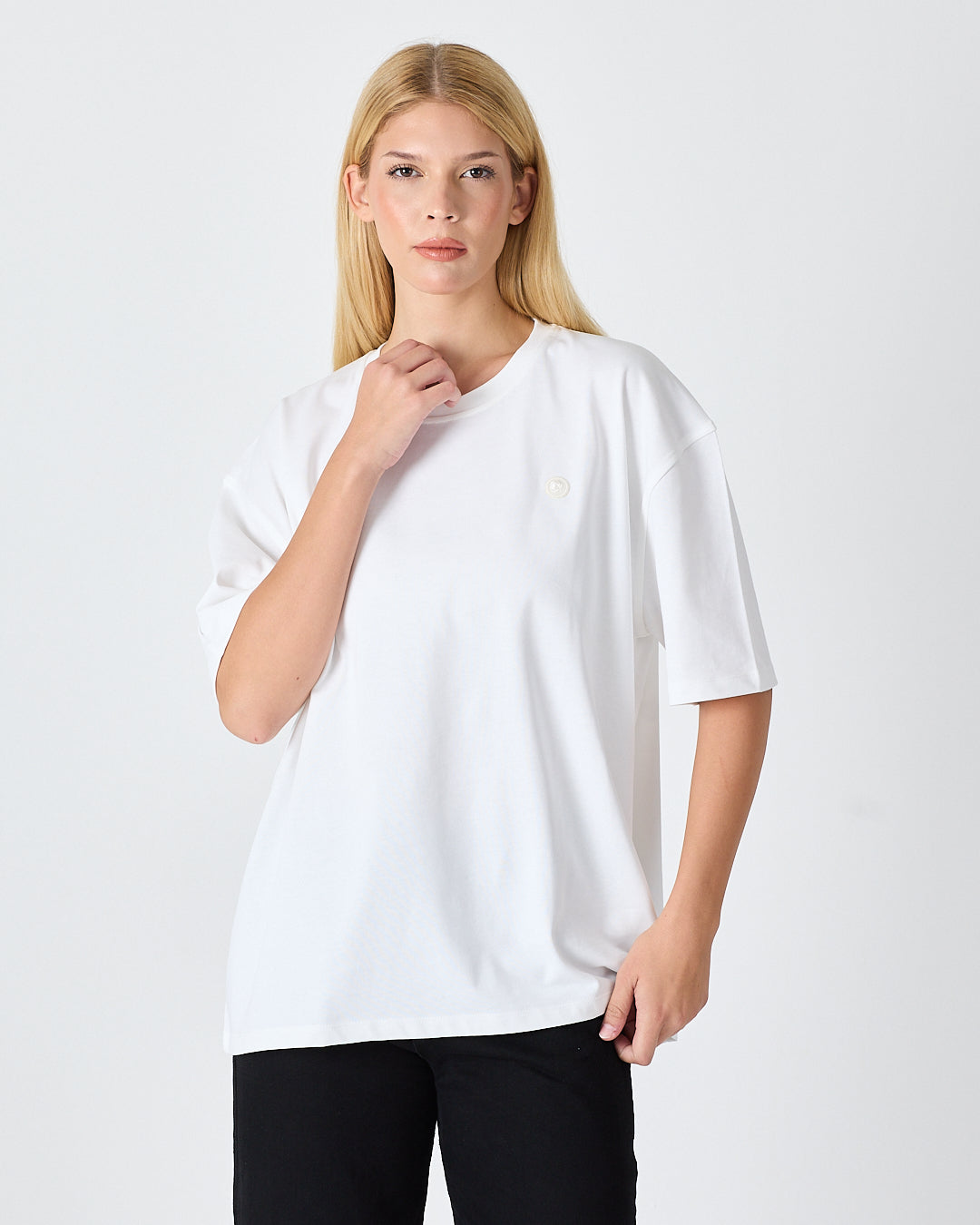 Temiz ve zamansız beyaz tonu ile öne çıkan bu oversize unisex tişört, sade ve modern bir stil sunar. Oversize kalıbı sayesinde rahat bir kullanım sağlarken, tona ton nakış logo detayı ürüne minimal ve dengeli bir şıklık katar. Günlük kombinler için kolay ve her zamana uyumlu bir parçadır.