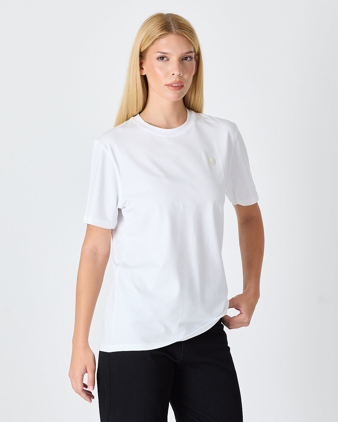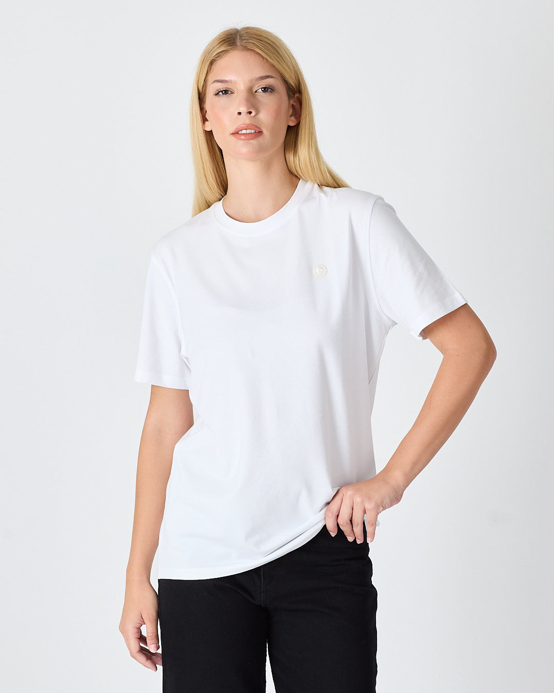 Temiz ve modern görünümüyle her dolabın vazgeçilmezi olan bu unisex beyaz tişört, göğüs kısmındaki aplike detay ile sade şıklığı bir adım öne taşıyor. Hafif ve yumuşak dokusu ve serin tutan dokusuyla gün boyu ferah bir kullanım sunar; ister spor tarzda ister günlük şehir kombinlerinde kolayca uyum sağlar.