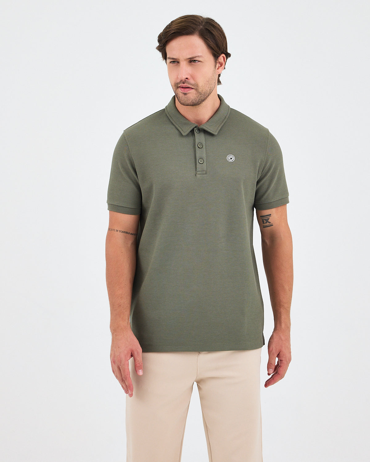 Doğal ve soft görünümüyle öne çıkan açık haki renkteki bu unisex polo tişört, pike dokusunun nefes alabilir yapısıyla gün boyu konfor sağlar. Göğüs kısmındaki aplike detay, sade tasarıma modern ve sportif bir dokunuş ekler. Günlük stil ve iş kombinlerinde rahatlıkla kullanılabilecek çok yönlü bir parçadır.