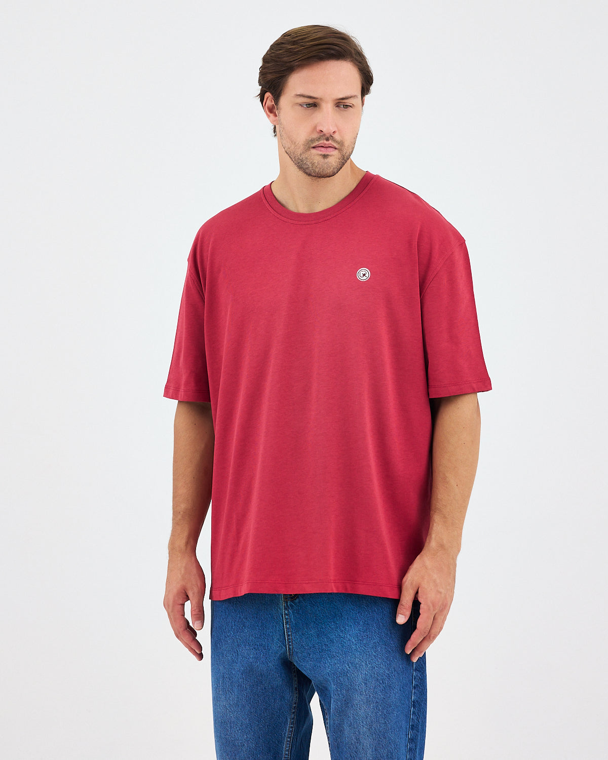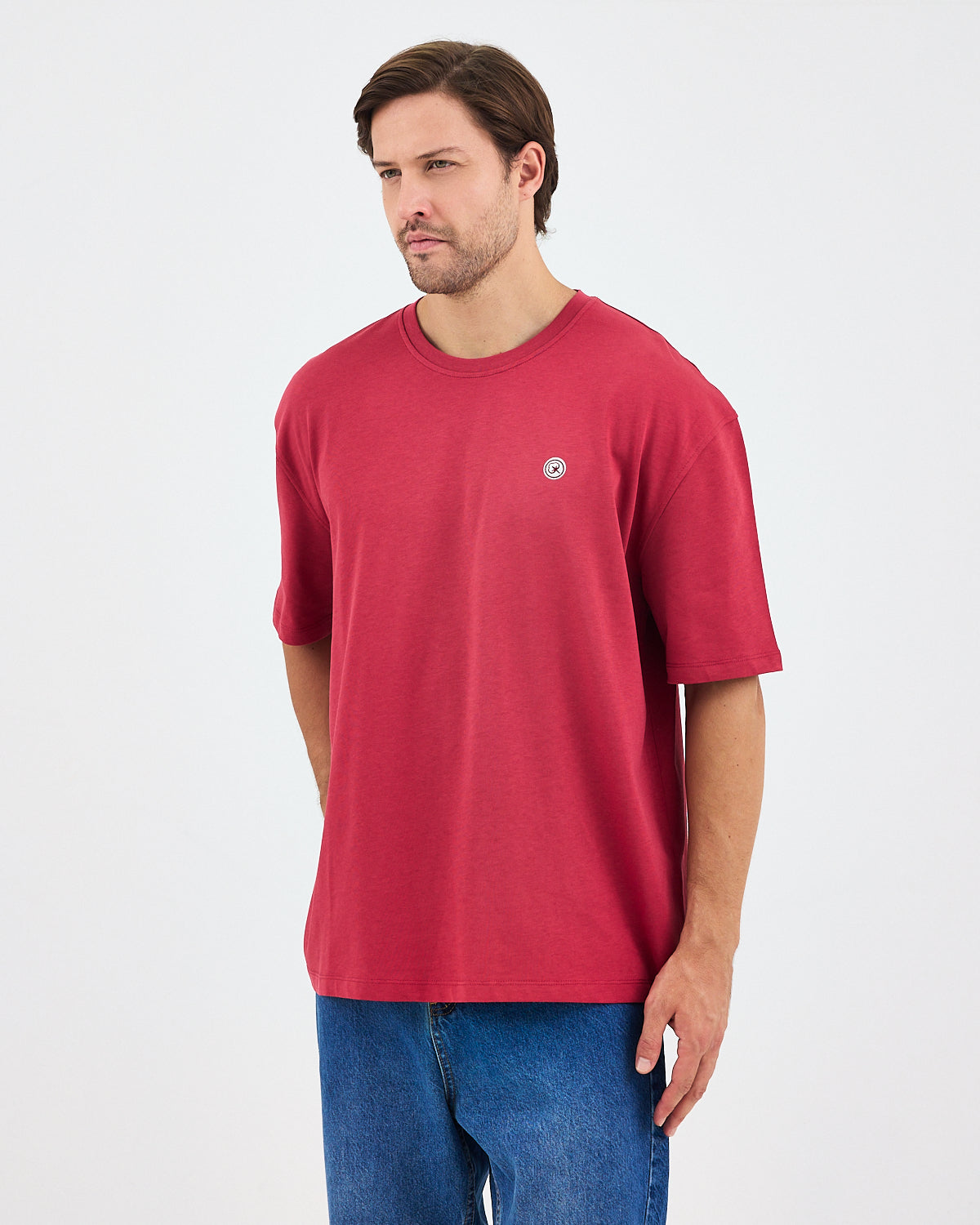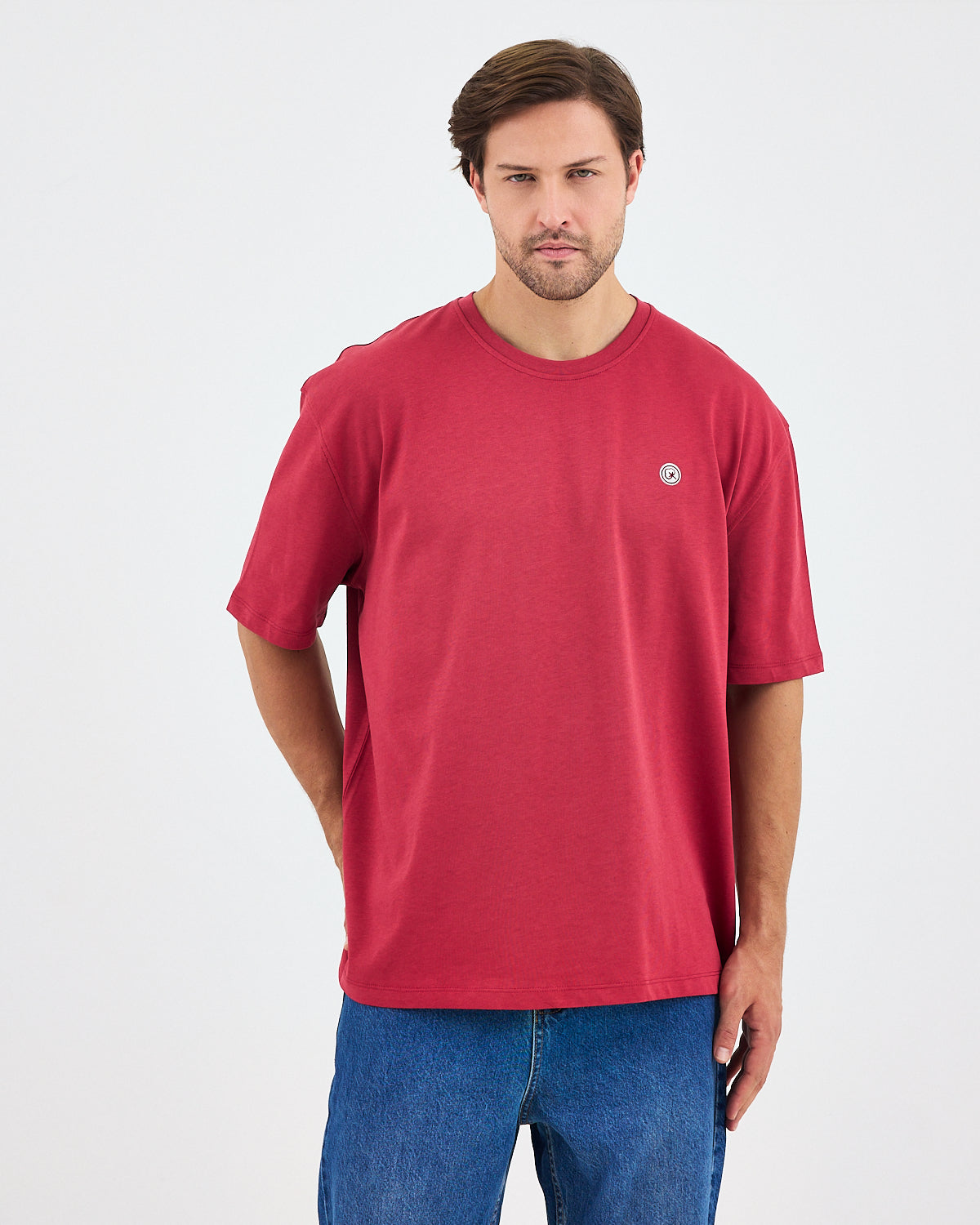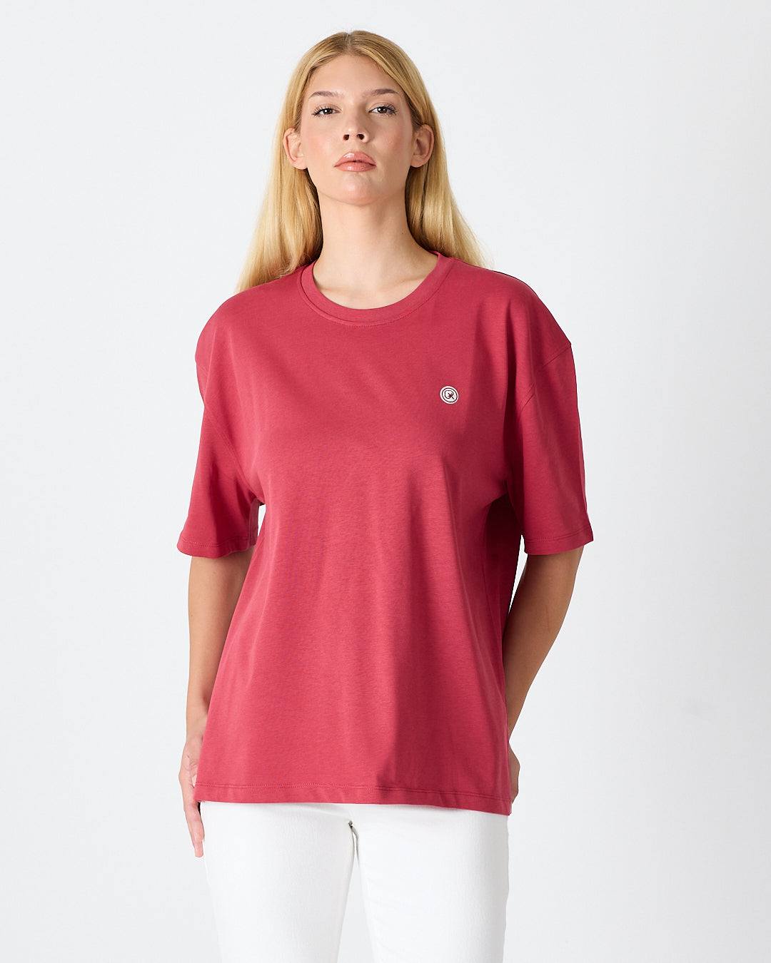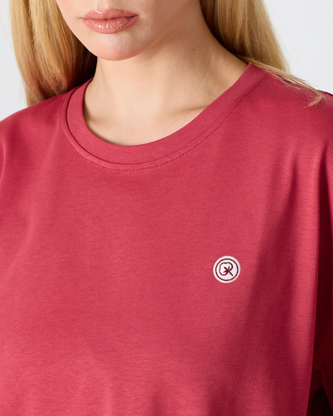 Oversize kalıbıyla modern ve rahat bir görünüm sunan bu unisex tişört, bordo tonuyla güçlü ve stil sahibi bir duruş sağlar. Göğüs kısmındaki beyaz aplike logo detayı, ürüne sade ama dikkat çekici bir şıklık katar. Yumuşak dokulu %100 organik pamuklu kumaşı sayesinde gün boyu hafiflik ve konfor sunar; günlük kombinlerden spor şıklığına kadar her tarzla kolayca uyum sağlar.