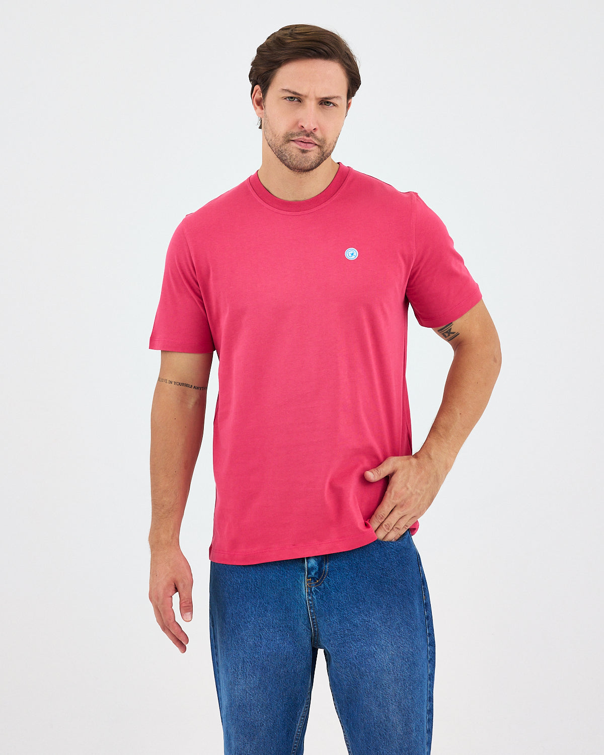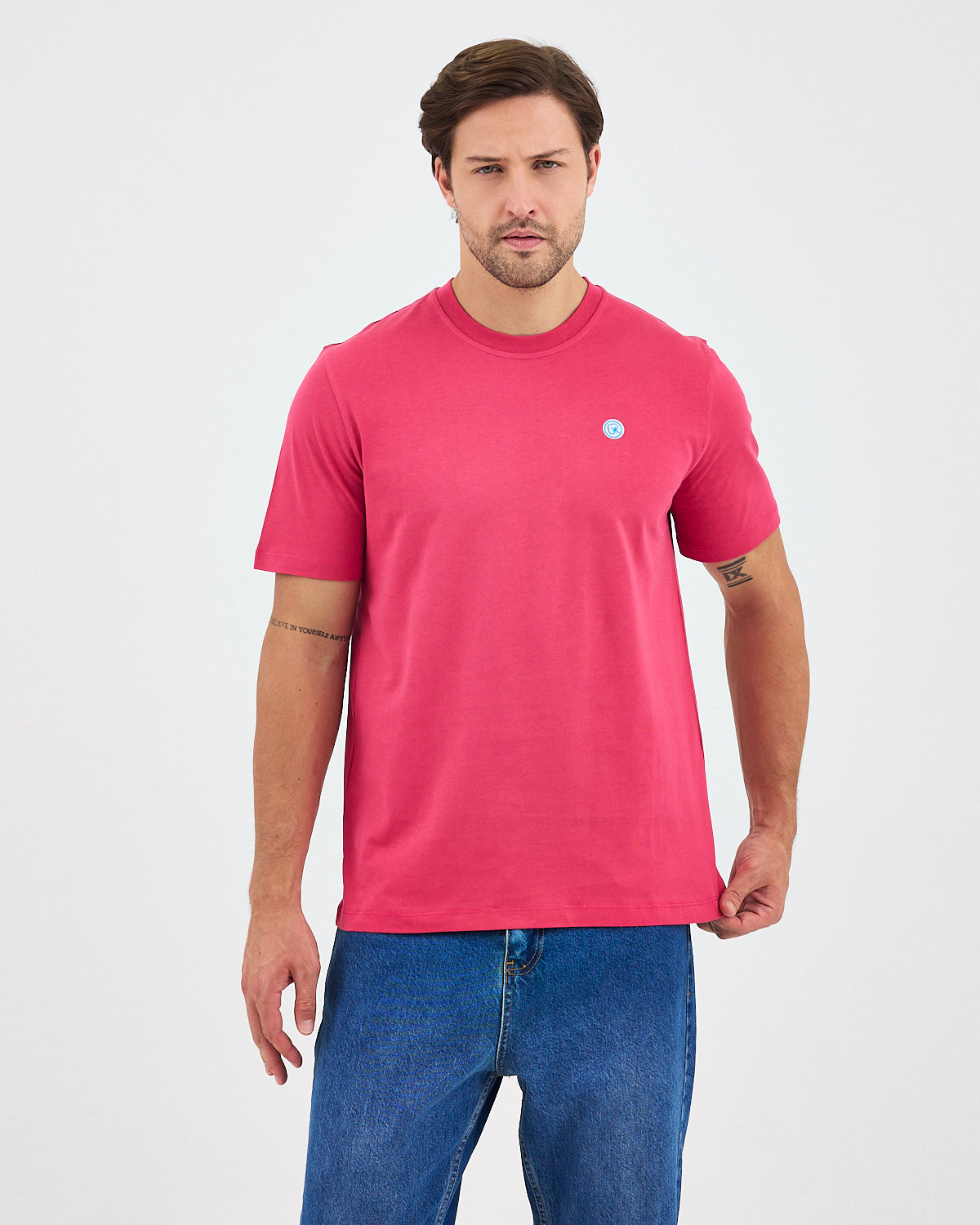 Canlı kiraz kırmızısı rengiyle enerjik bir görünüm sunan bu unisex tişört, sade tasarımını göğüs kısmındaki aplike logo detayı ile modern bir havaya taşıyor. Rahat kalıbı ve yumuşak dokusuyla gün boyu konfor sağlar; ister günlük kombinlerde ister spor şıklığında kolayca tercih edilir.