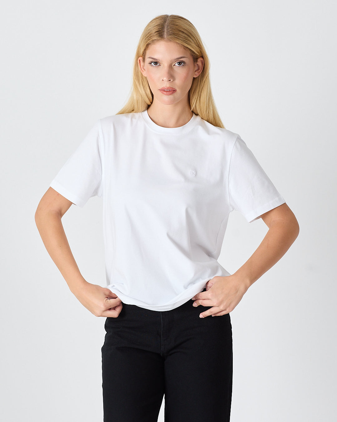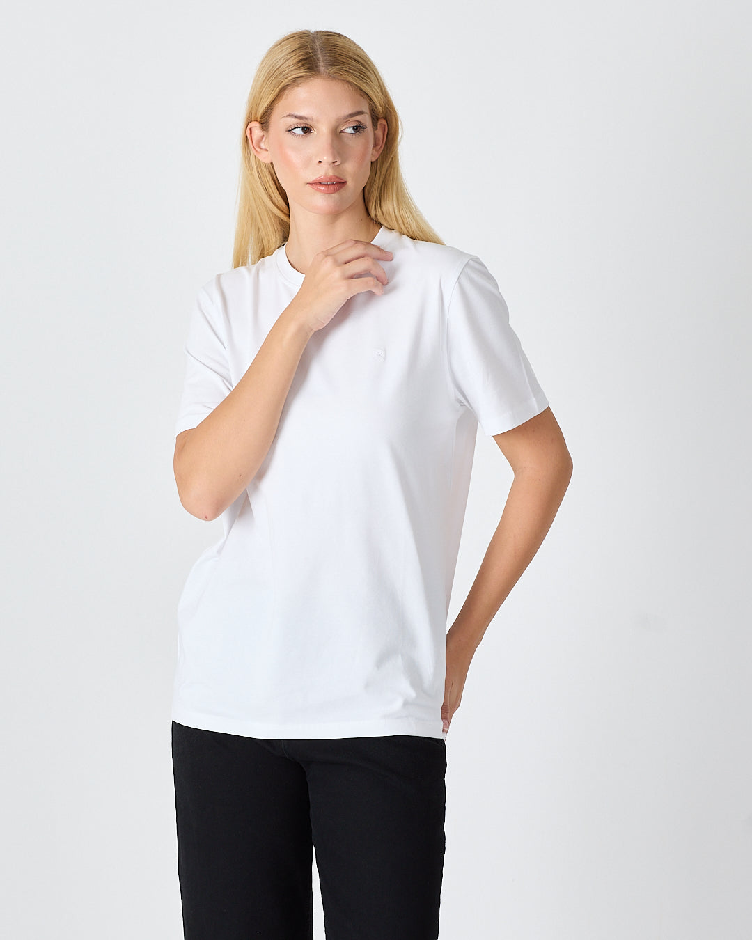 Sade ve zamansız görünümüyle her kombine uyum sağlayan bu beyaz unisex tişört, göğüs kısmındaki tona ton nakış detayı ile minimal ve modern bir stil sunar. Yumuşak dokusu sayesinde gün boyu konfor sağlar, hm spor hem günlük kombinlerde rahatlıkla kullanılabilir.