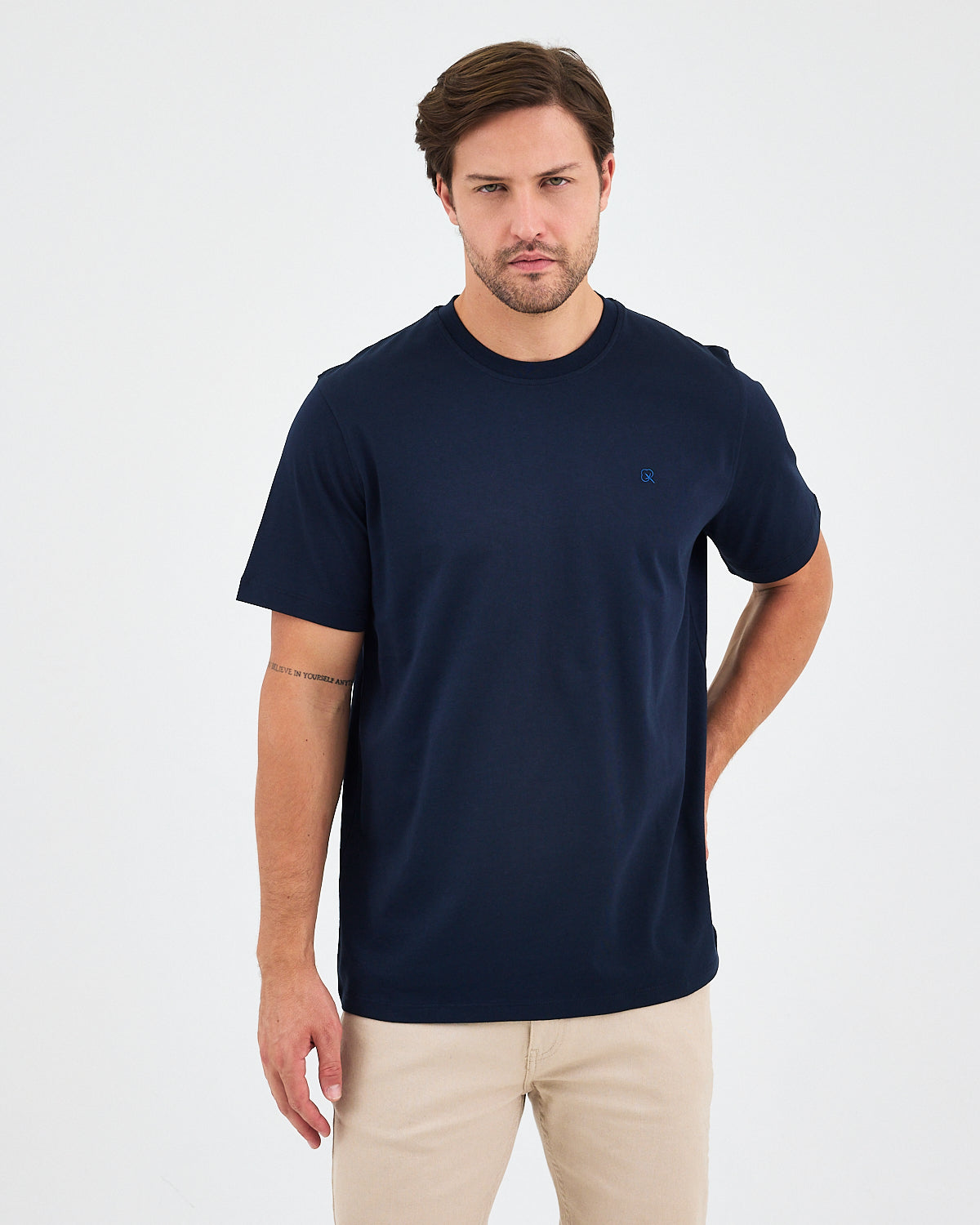 Minimal ve şık duruşuyla her kombine uyum sağlayan bu lacivert unisex tişört, göğüs kısmındaki koyu mavi nakış detayı ile sade ama dikkat çekici bir görünüm sunar. Yumuşak dokusu sayesinde gün boyu konfor sağlar; spor, günlük veya casual kombinlere uyumlanır.