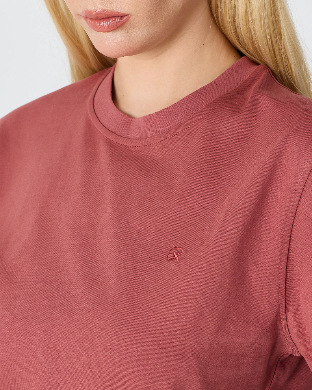 Gül kurusu tonunun soft ve modern görünümüyle öne çıkan bu unisex tişört, göğüs kısmındaki tona ton nakış detayı sayesinde sade ama şık bir stil sunar. Yumuşak dokusu ve regular kesimiyle gün boyu konfor sağlar; günlük kombinlerde kolayca tercih edilebilecek zarif bir parçadır.