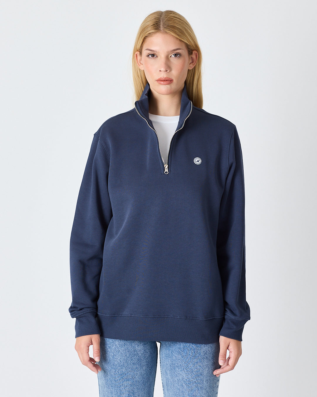 Şık ve sade tasarımıyla öne çıkan unisex fermuarlı sweatshirt, günlük kombinlerde hem konfor hem de stil sunar. Göğüs kısmındaki beyaz logo aplike detay, ürüne modern ve dikkat çekici bir görünüm kazandırır. Yumuşak dokuludur ve gün boyu sıcak tutar.