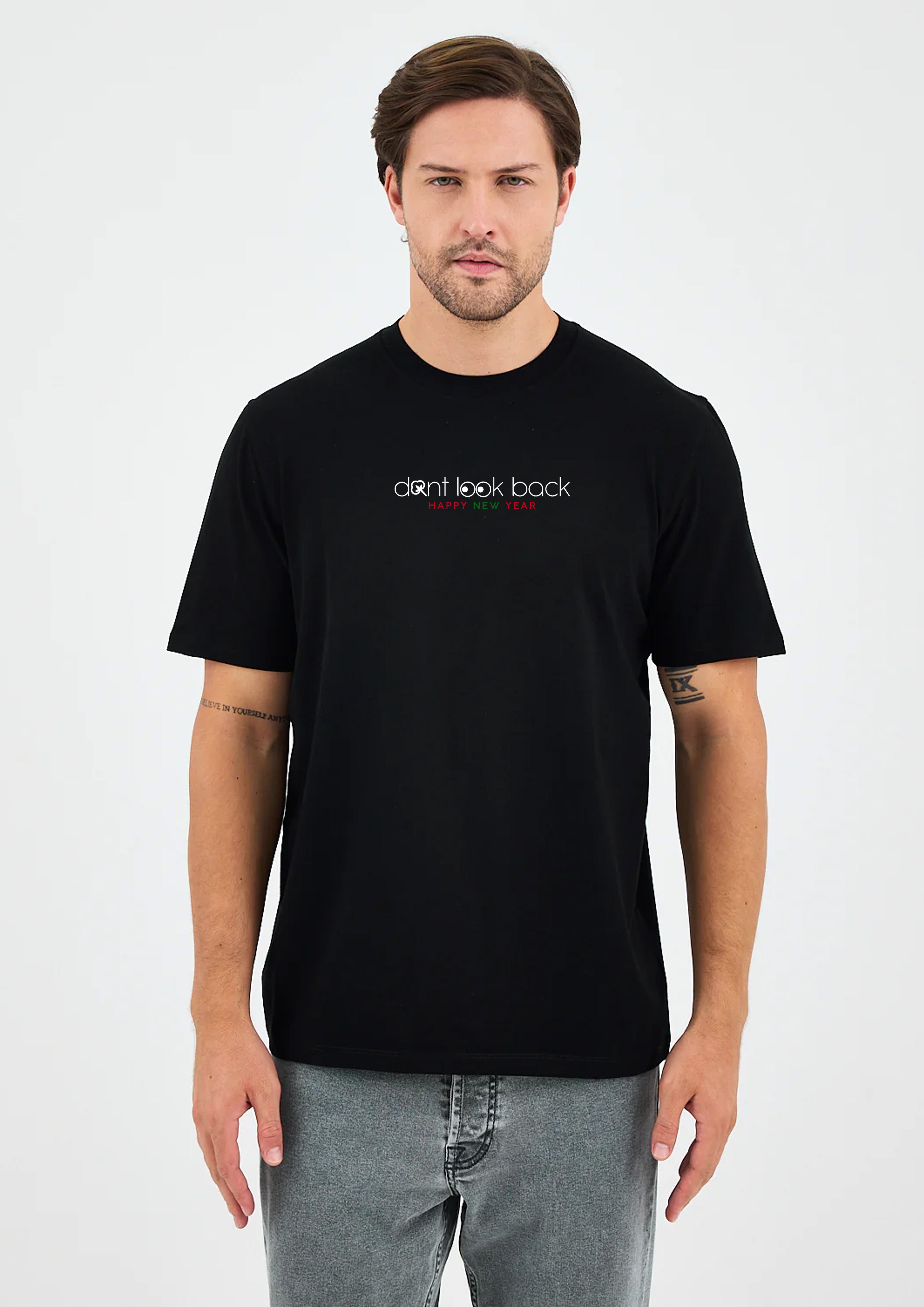 • Göğüs kısmında 'Don't Look Back' & 'Happy New Year' yazı baskısı