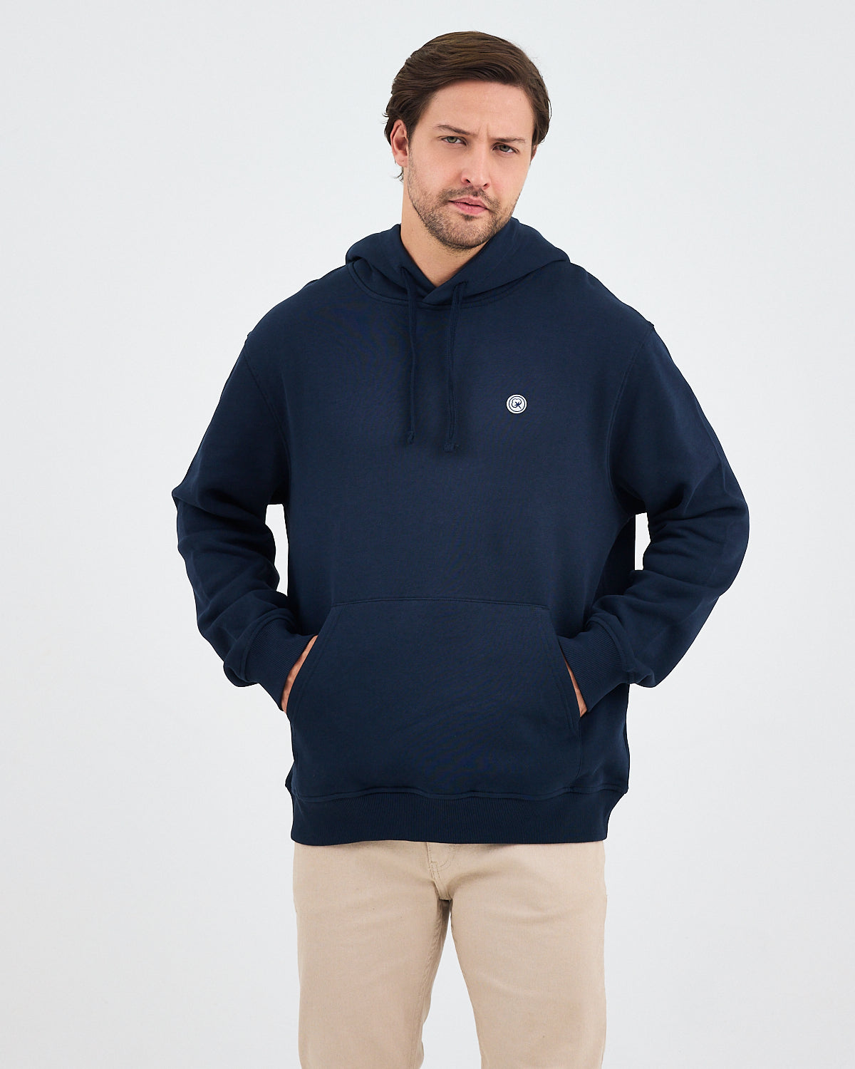 Lacivert rengiyle zamansız ve sade bir görünüme sahip bu unisex kapüşonlu hoodie, göğüs kısmındaki beyaz aplike logo detayıyla sportif ve modern bir tarz sunar. Yumuşak dokusu ve rahat kesimi sayesinde gün boyu konfor sağlar; hem günlük hem de spor kombinlerle kolayca uyum yakalar.