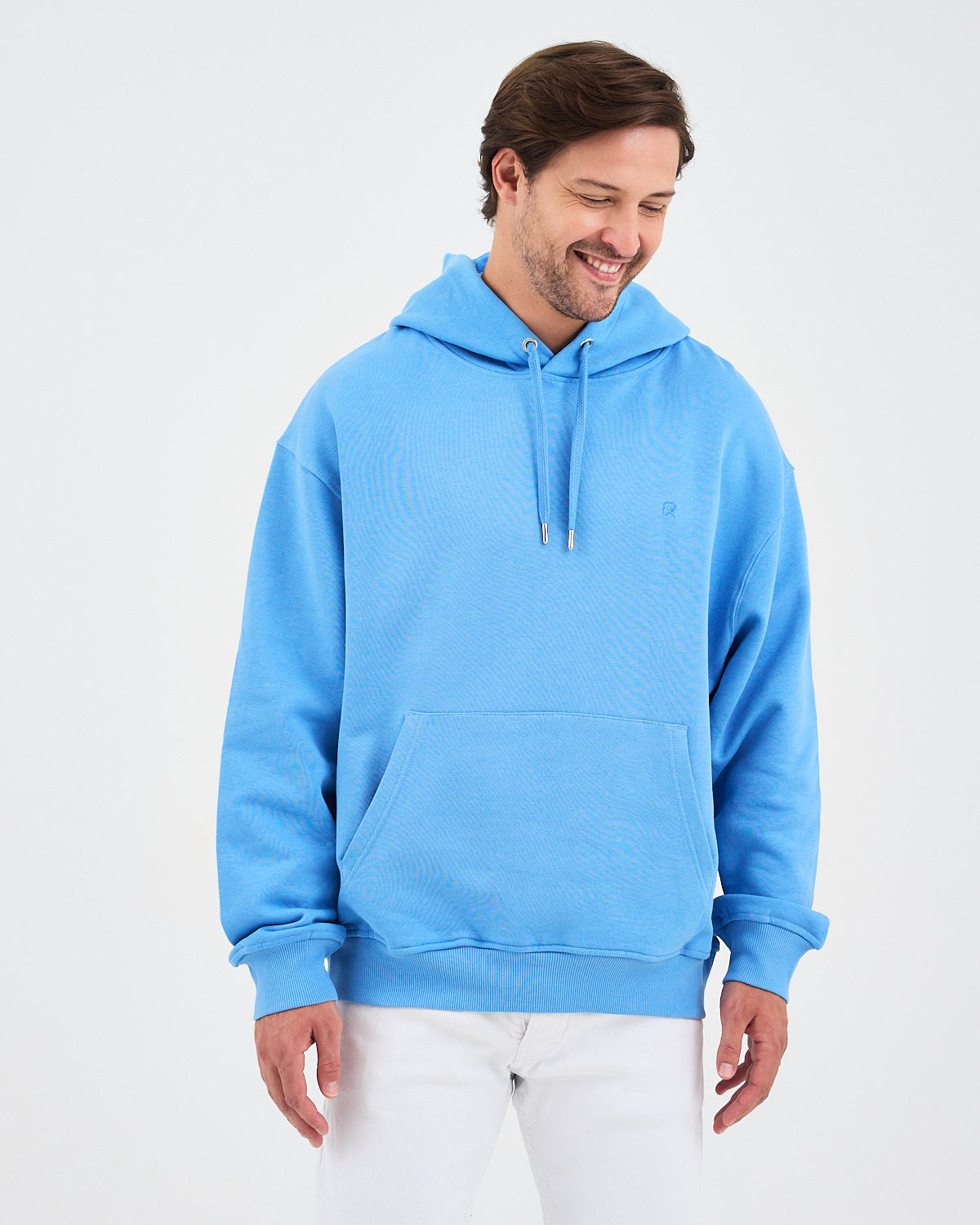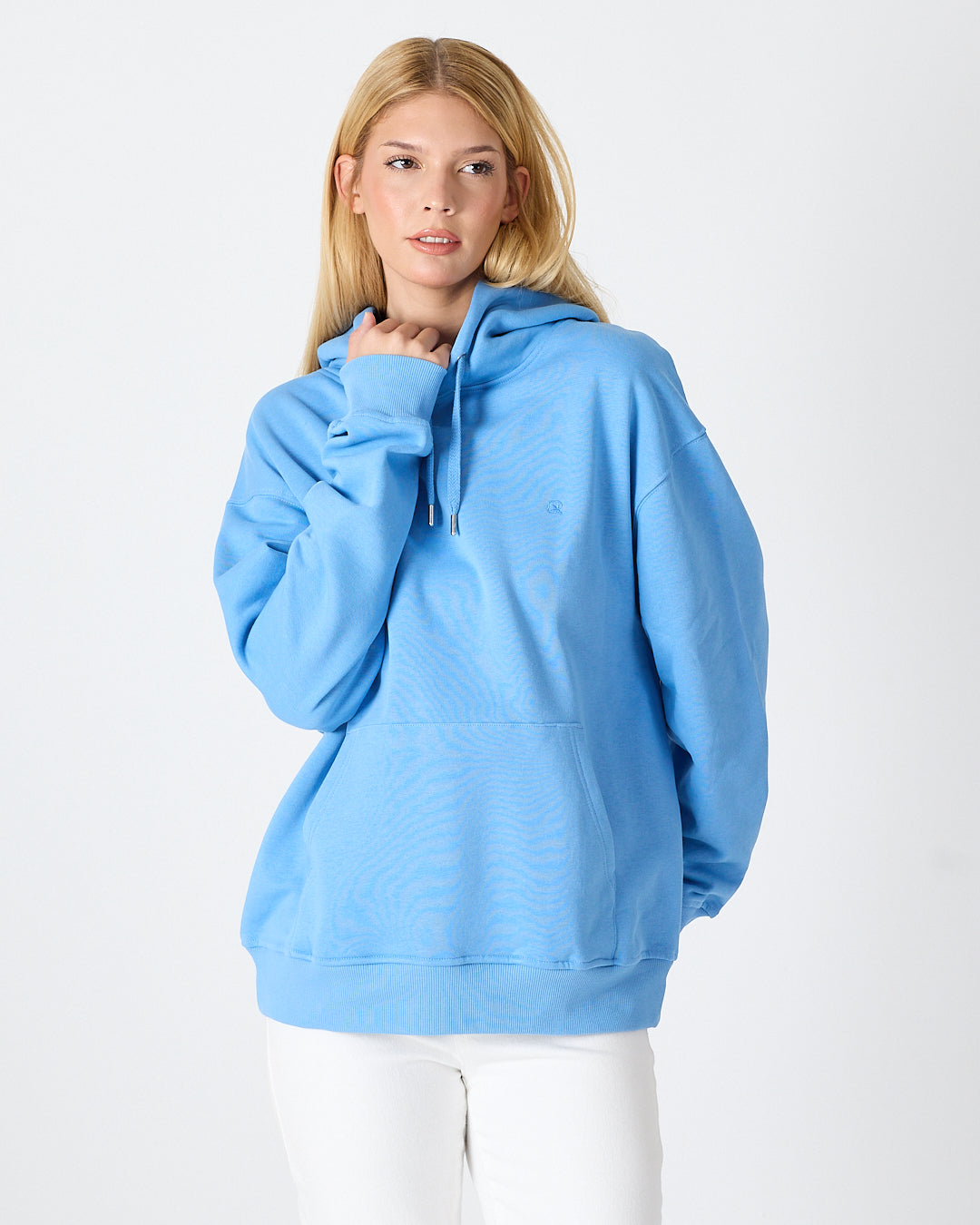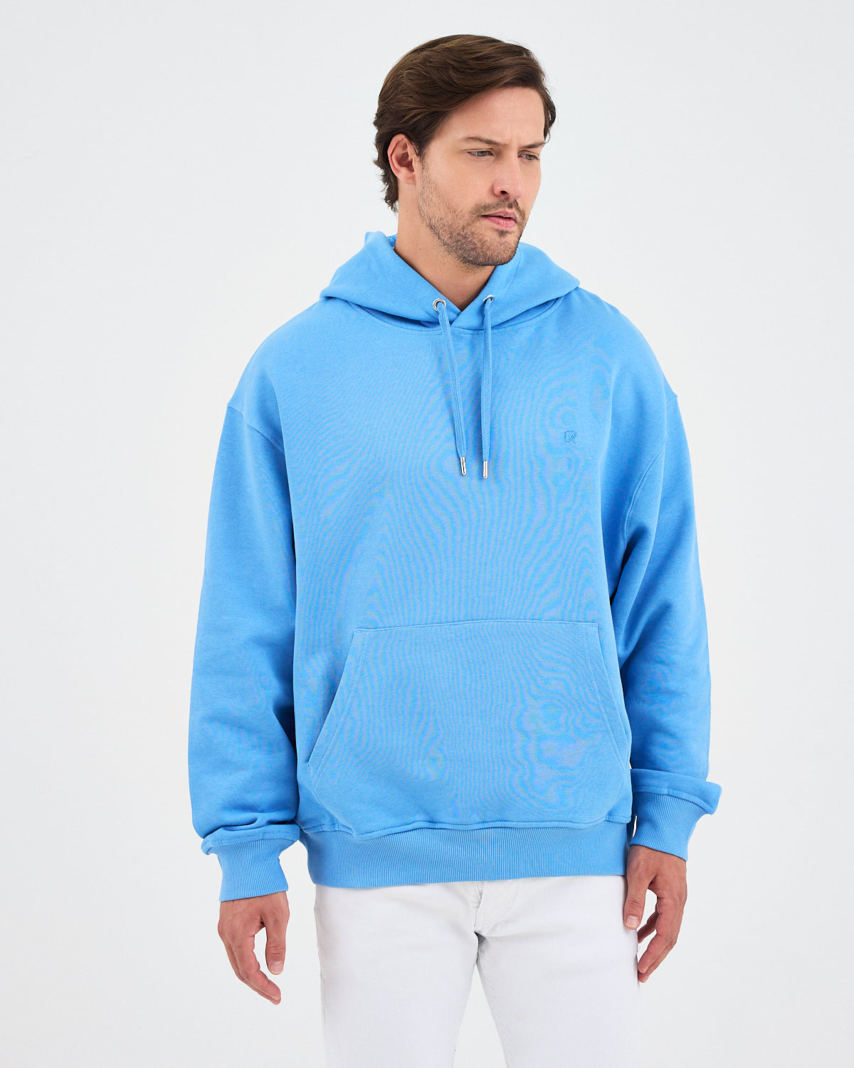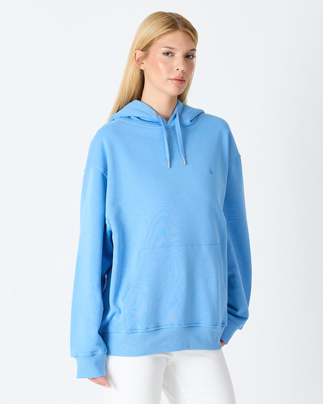 Açık mavinin ferah ve modern tonuyla oversize kesimi bir araya getiren bu unisex kapüşonlu sweatshirt; rahat kalıbı, yumuşak dokusu ve günlük kullanıma uygun sade tasarımıyla öne çıkar. Kanguru cebi pratiklik sağlarken, göğüs kısmındaki açık mavi tona ton logo nakış detayı ürüne minimal ve şık bir görünüm kazandırır. Hem kadın hem de erkek kullanıcılar için zamansız bir stil sunar.