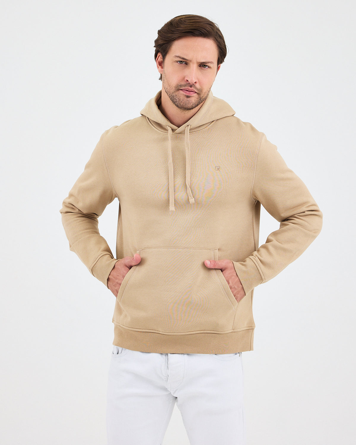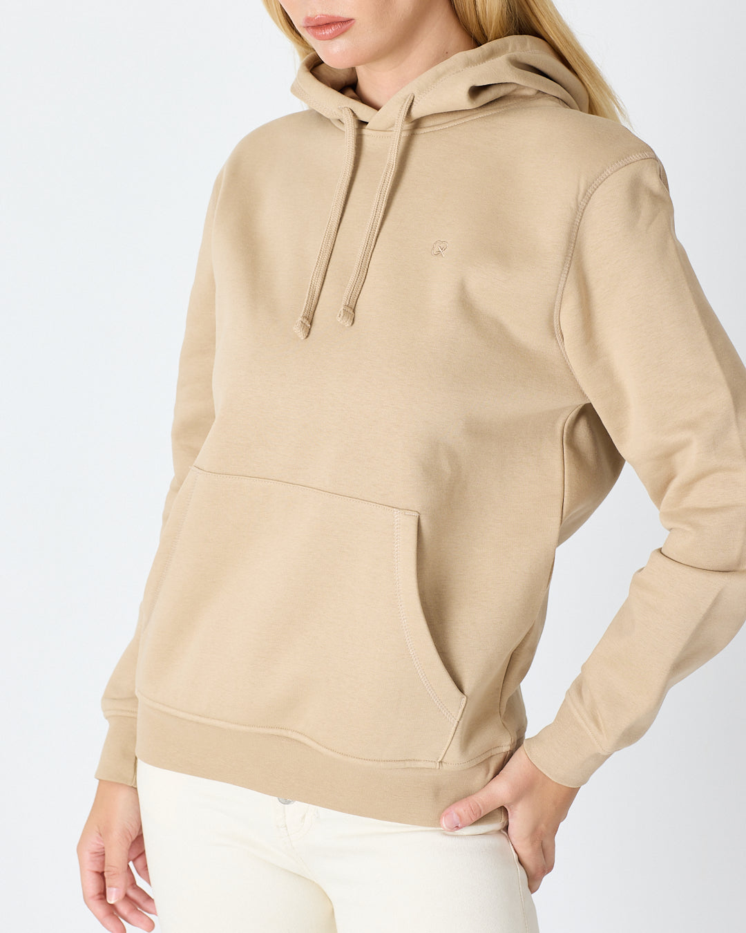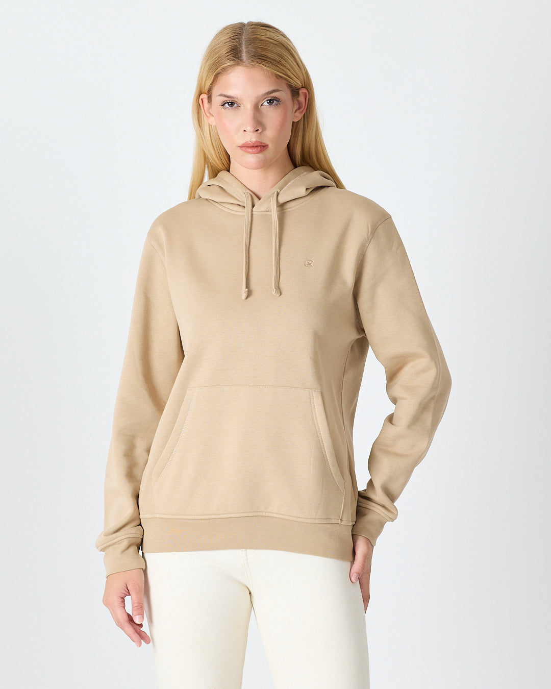 Doğal ve soft tonu ile her stile uyum sağlayan kum beji renkli bu unisex kapüşonlu sweatshirt; modern bir görünümü konforla birleştirir. Yumuşak şardonlu iç yüzeyi gün boyu sıcaklık ve rahatlık sunarken, kanguru cebi sayesinde kullanışlı bir tasarım sağlar. Sürdürülebilir bir üretim anlayışıyla hazırlanan model, organik pamuk dokusuyla kaliteli, dayanıklı ve nefes alabilen bir yapı sunar.