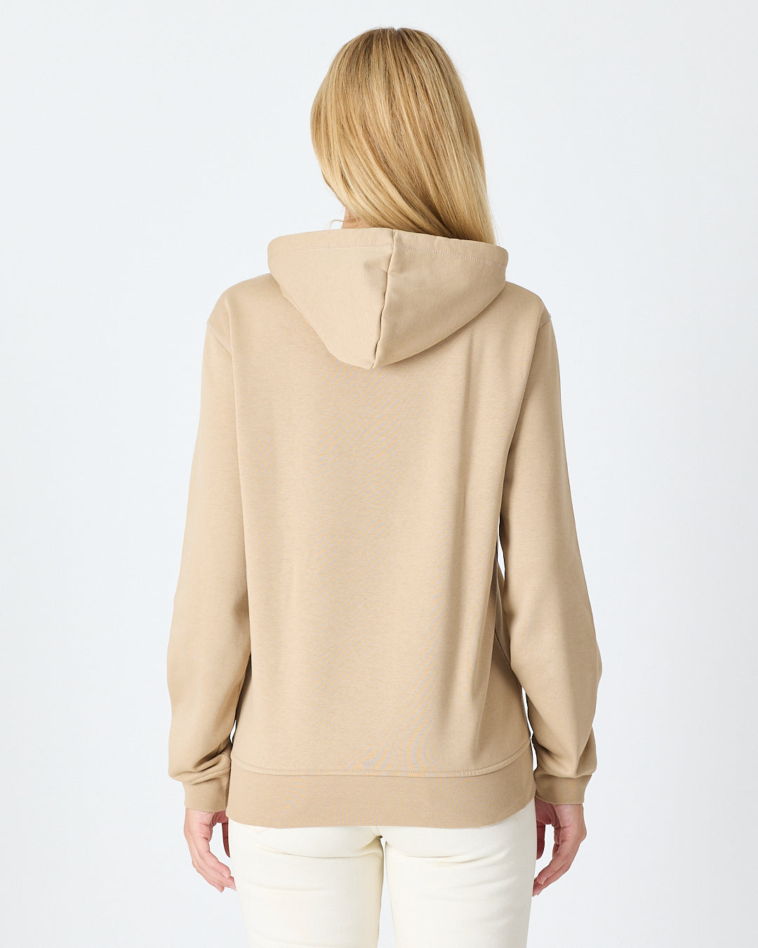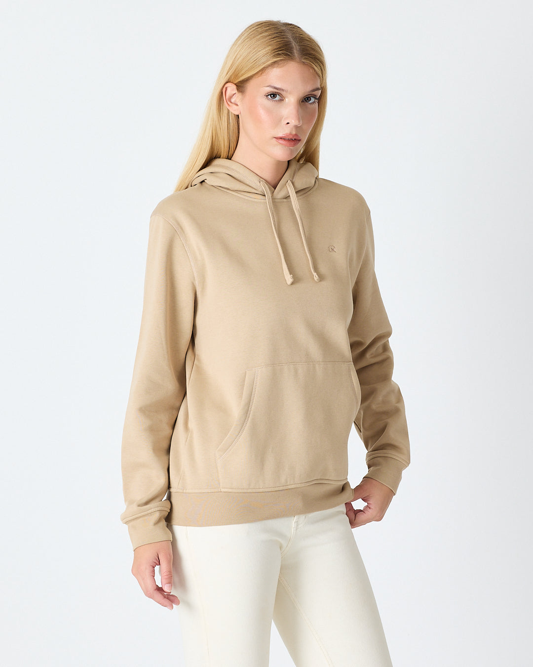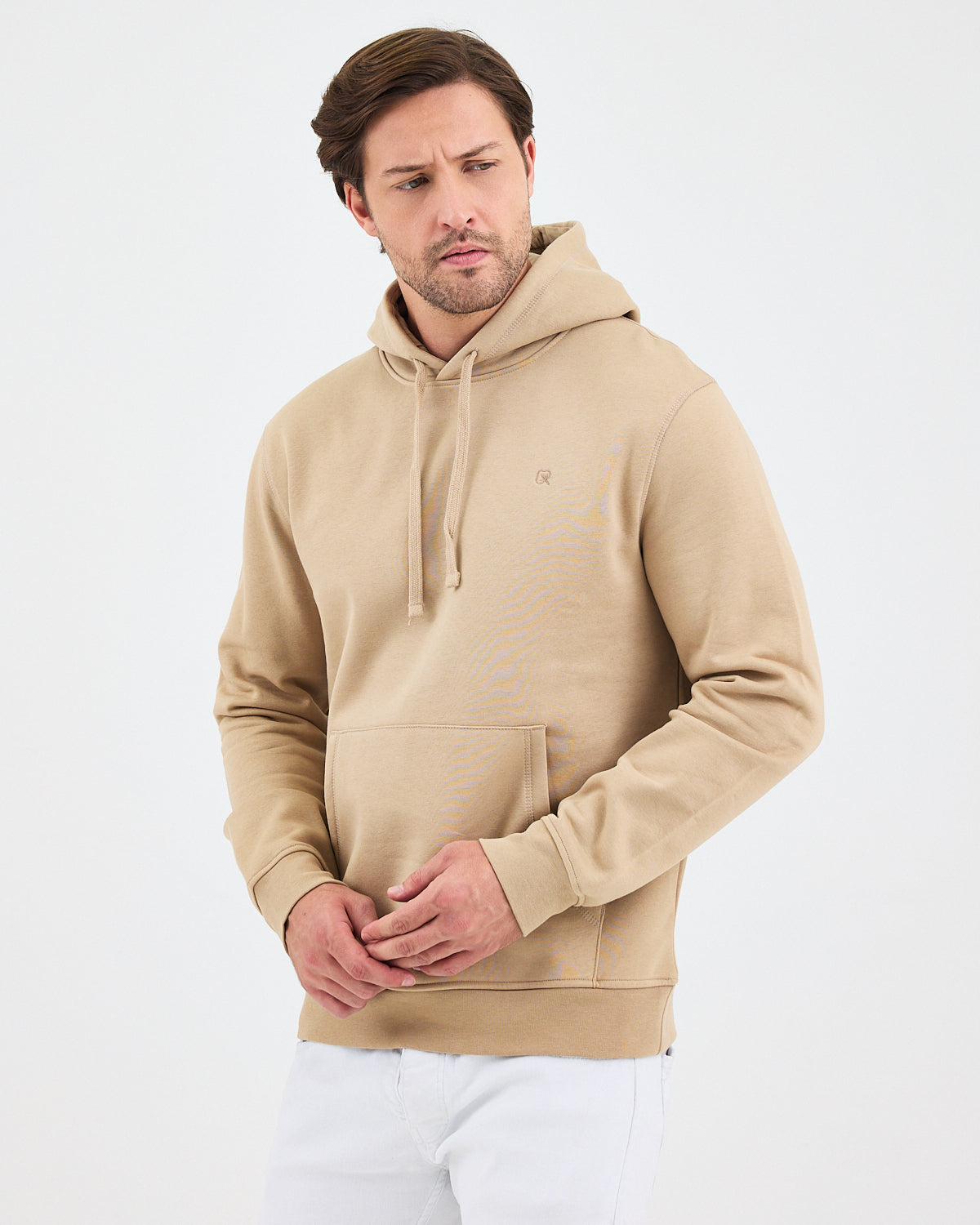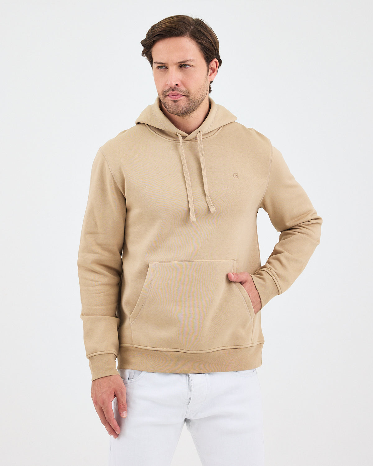 Doğal ve soft tonu ile her stile uyum sağlayan kum beji renkli bu unisex kapüşonlu sweatshirt; modern bir görünümü konforla birleştirir. Yumuşak şardonlu iç yüzeyi gün boyu sıcaklık ve rahatlık sunarken, kanguru cebi sayesinde kullanışlı bir tasarım sağlar. Sürdürülebilir bir üretim anlayışıyla hazırlanan model, organik pamuk dokusuyla kaliteli, dayanıklı ve nefes alabilen bir yapı sunar.