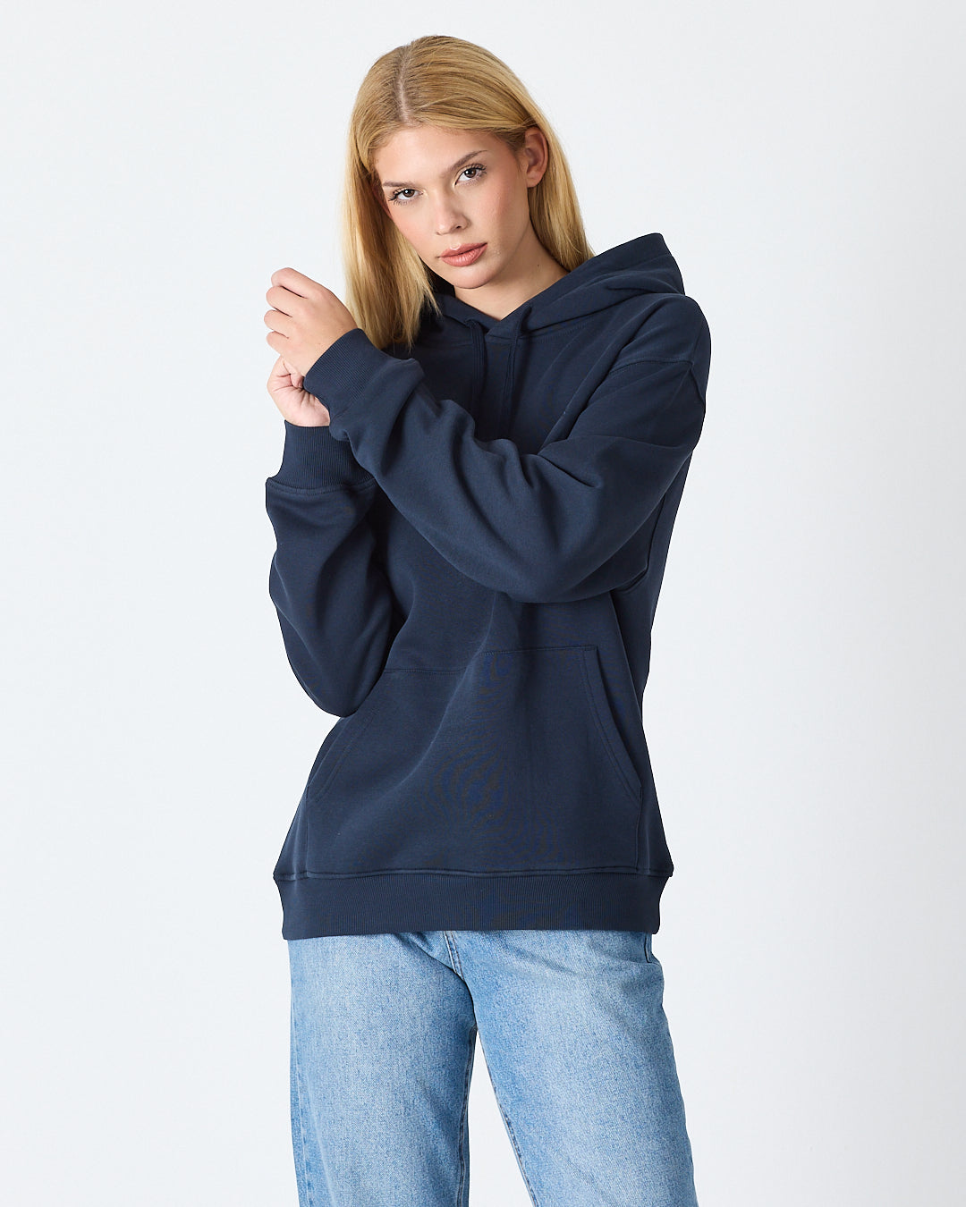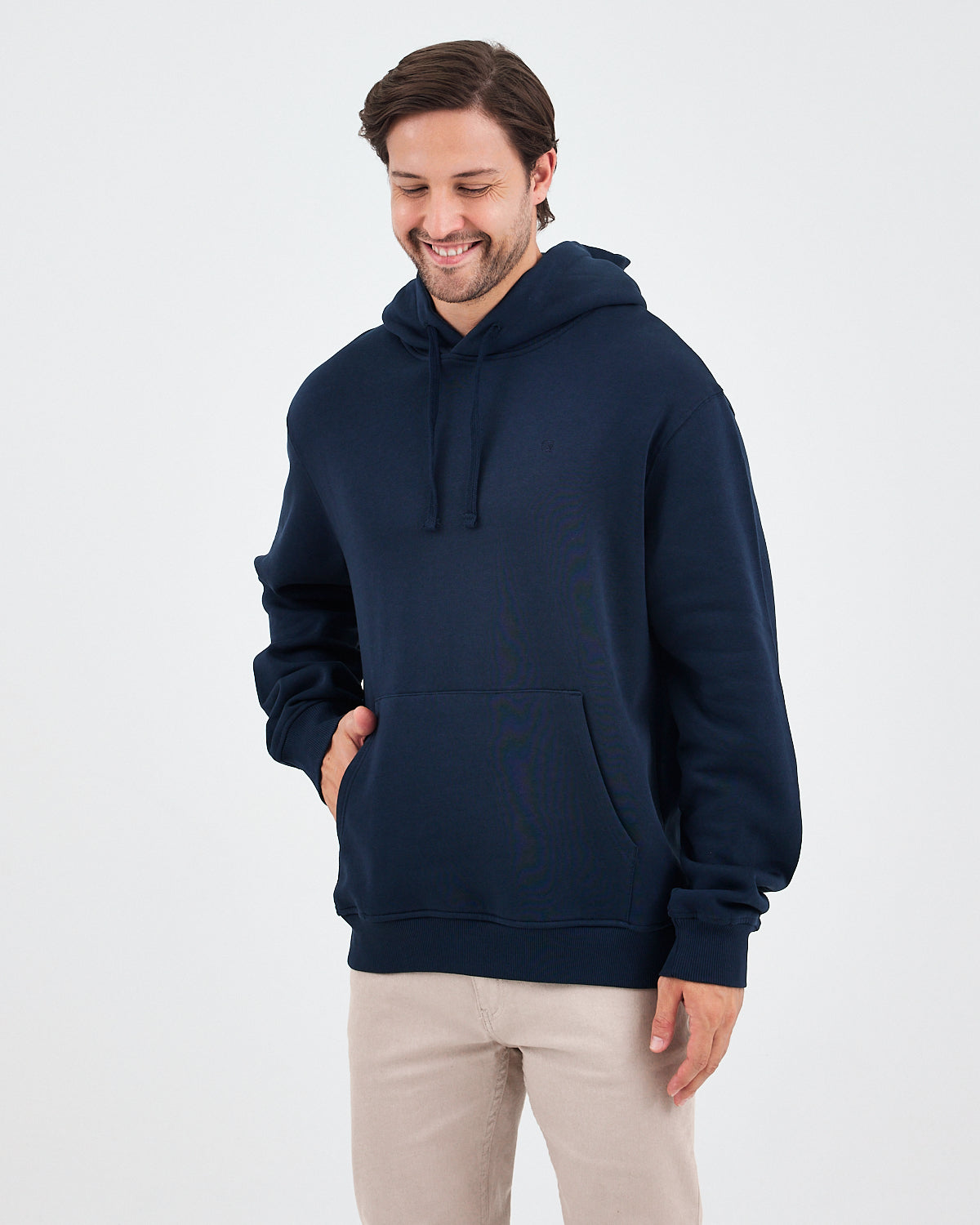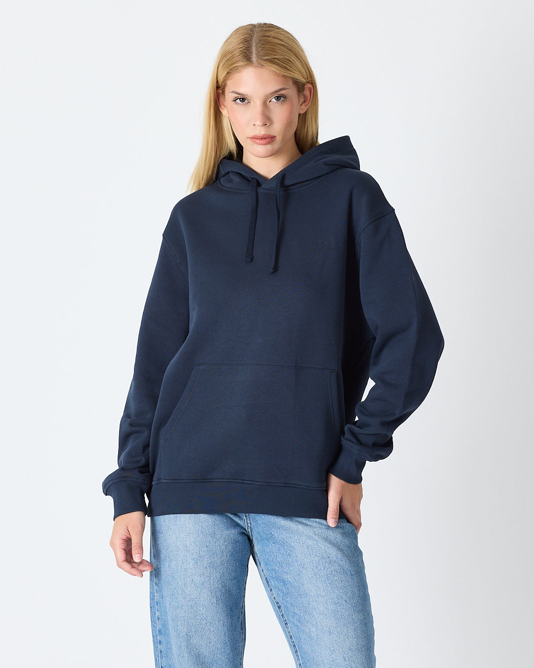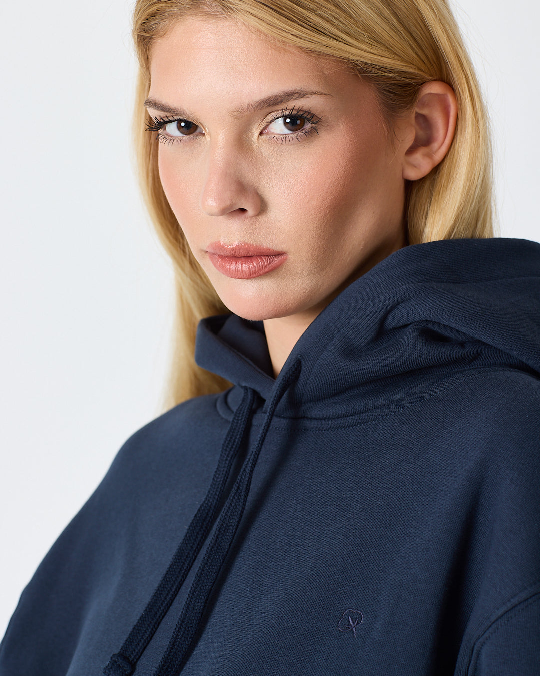 Lacivert rengin zamansız şıklığını organik pamuklu dokuyla buluşturan bu kapüşonlu sweatshirt; yumuşacık şardonlu iç yüzeyi ve siyah tona ton nakış detayıyla hem rahat hem de modern bir görünüm sunar. Günlük kullanım için ideal olan bu model, konforlu yapısı ve temiz duruşuyla gardırobun vazgeçilmez parçalarından biri olmaya adaydır.