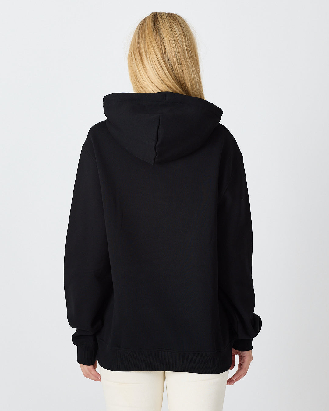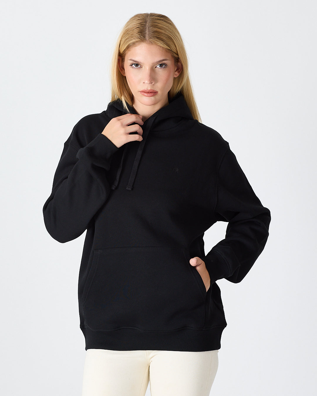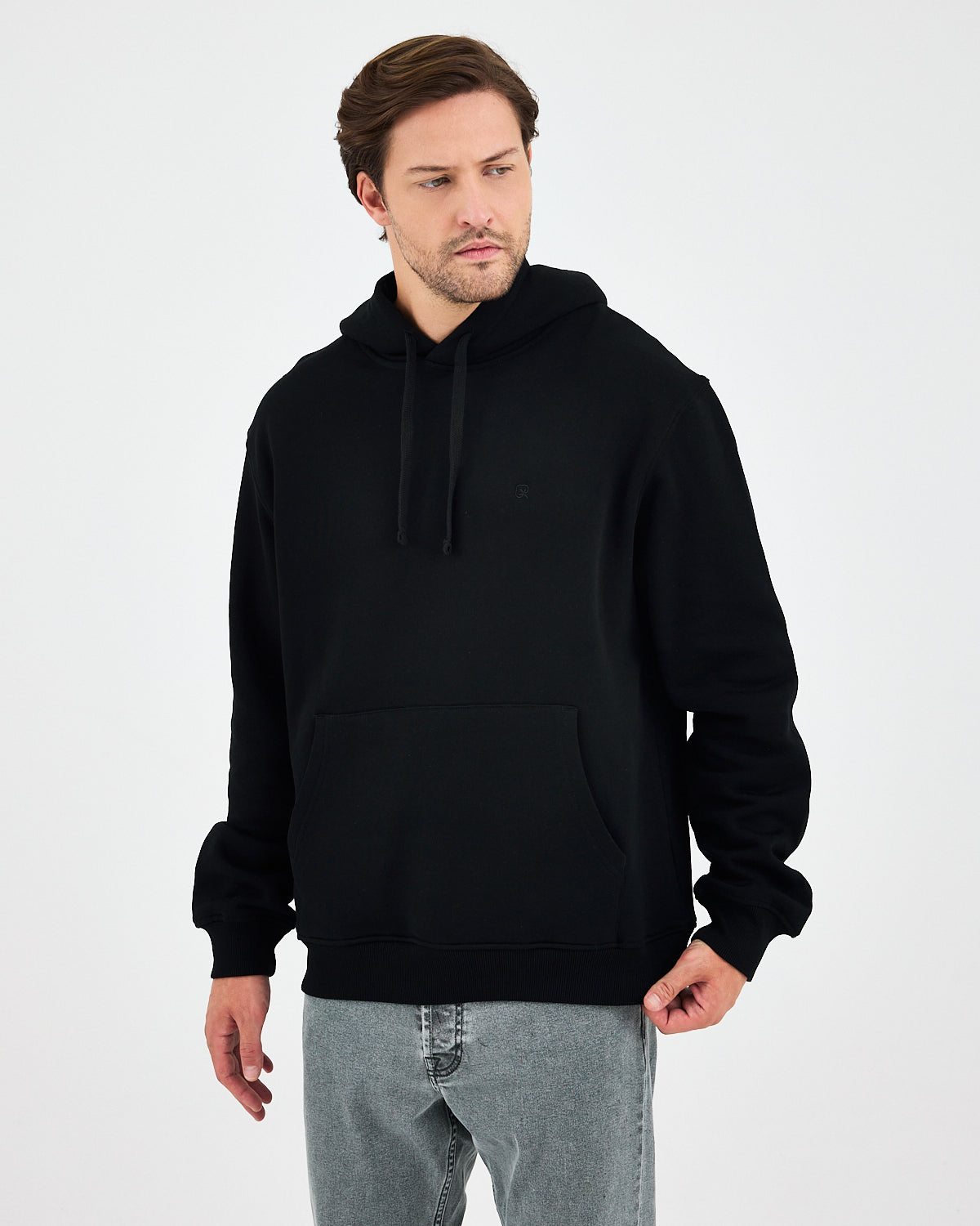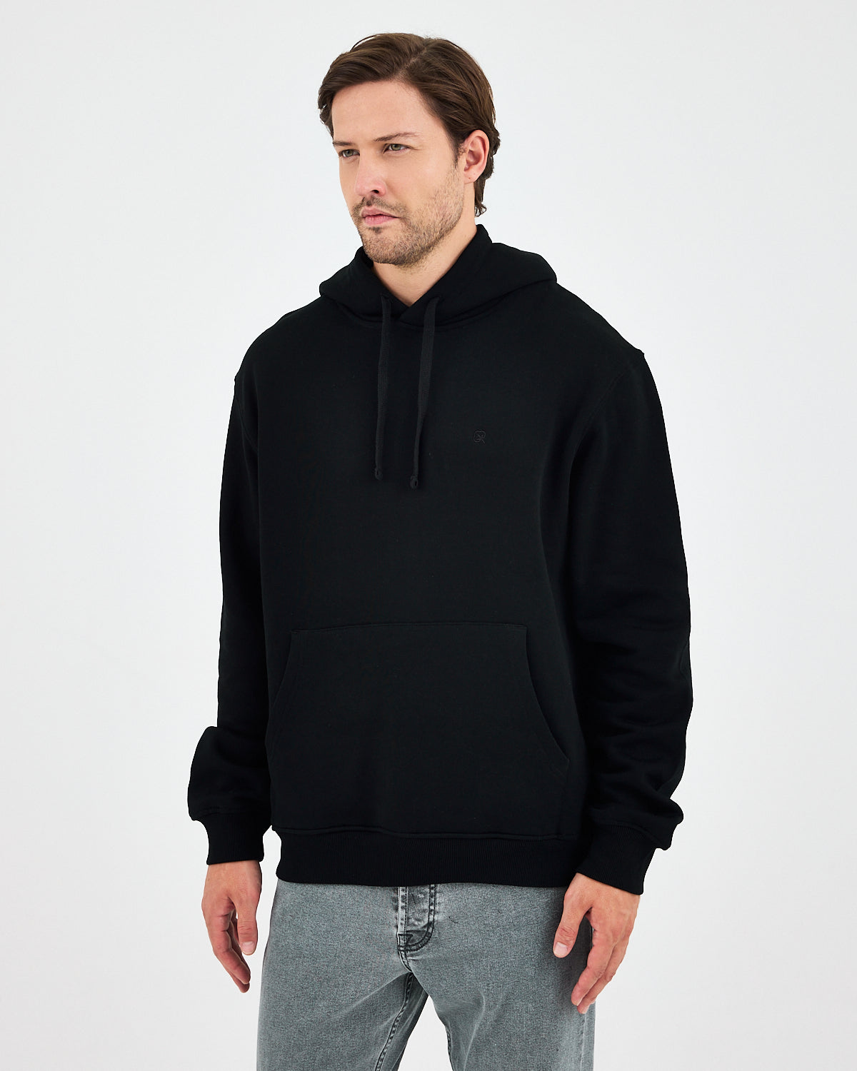 Siyah rengin zamansız şıklığını organik pamuklu dokuyla buluşturan bu kapüşonlu sweatshirt; yumuşacık şardonlu iç yüzeyi ve siyah tona ton nakış detayıyla hem rahat hem de modern bir görünüm sunar. Günlük kullanım için ideal olan bu model, konforlu yapısı ve temiz duruşuyla gardırobun vazgeçilmez parçalarından biri olmaya adaydır.