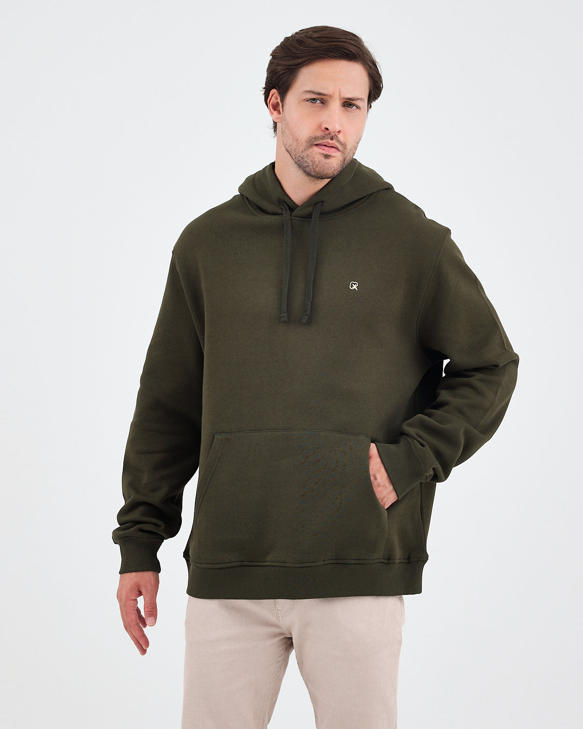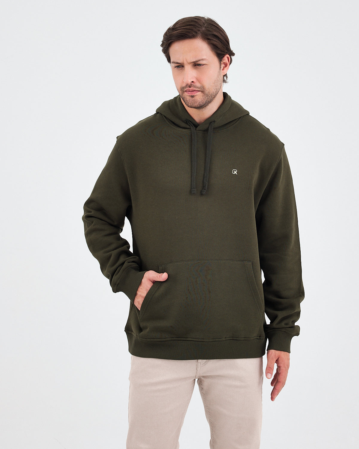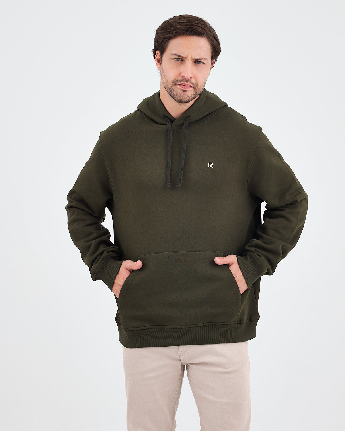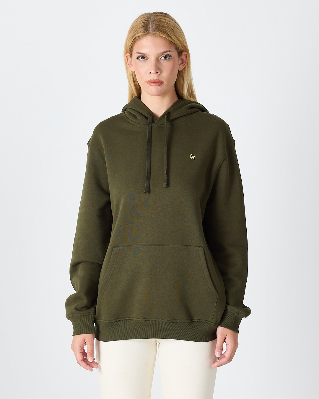 Haki renginin doğal ve güçlü tonunu yumuşak dokulu yüzeyle birleştiren bu unisex kapüşonlu sweatshirt; günlük kullanım için hem rahat hem de modern bir görünüm sunar. Göğüs kısmındaki ekru logo nakışı, koyu yeşil ton üzerine zarif bir kontrast oluşturarak ürüne sade ama dikkat çekici bir detay kazandırır. Hem kadın hem erkek için ideal bir kullanım sağlar.