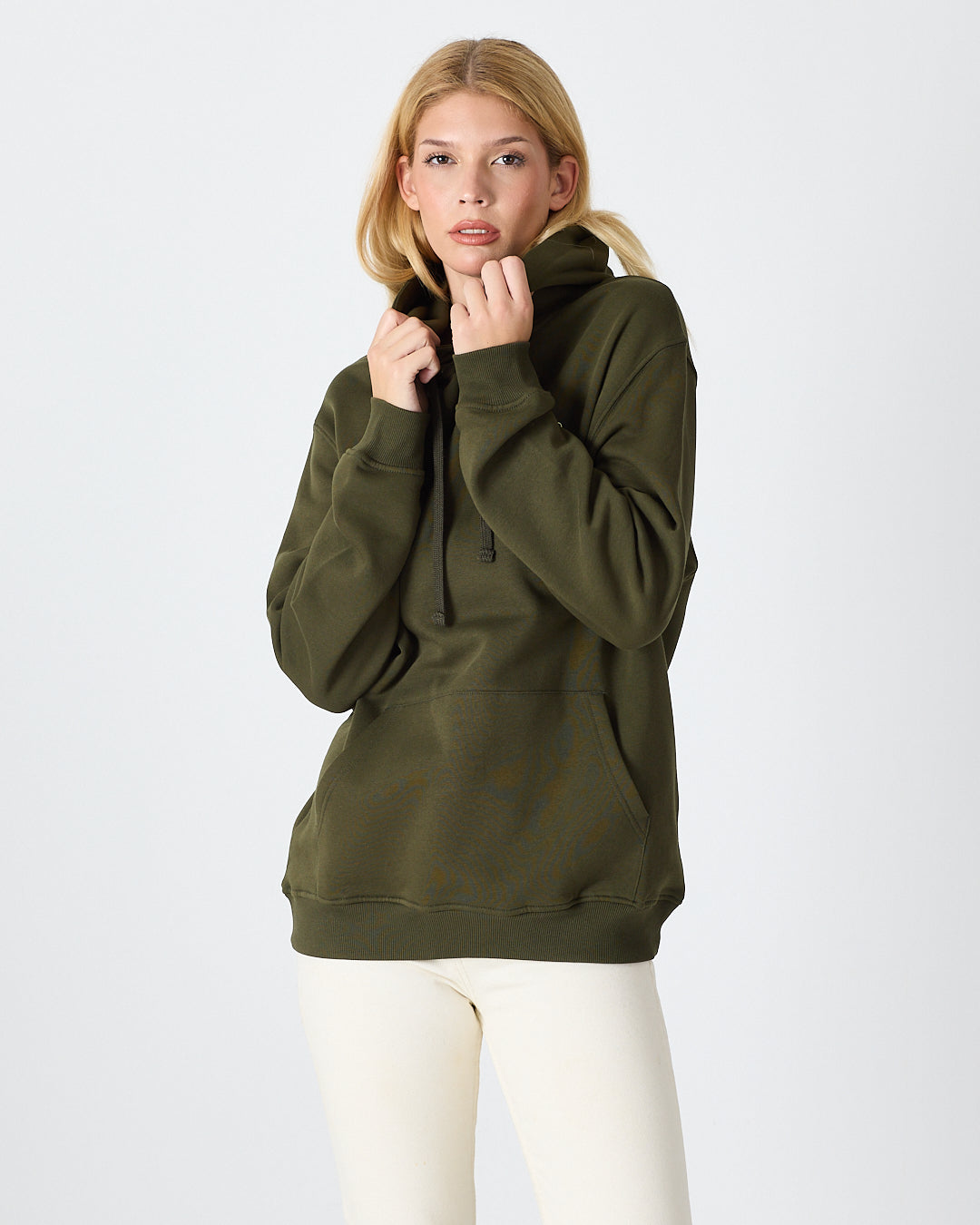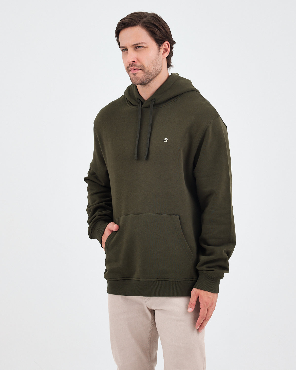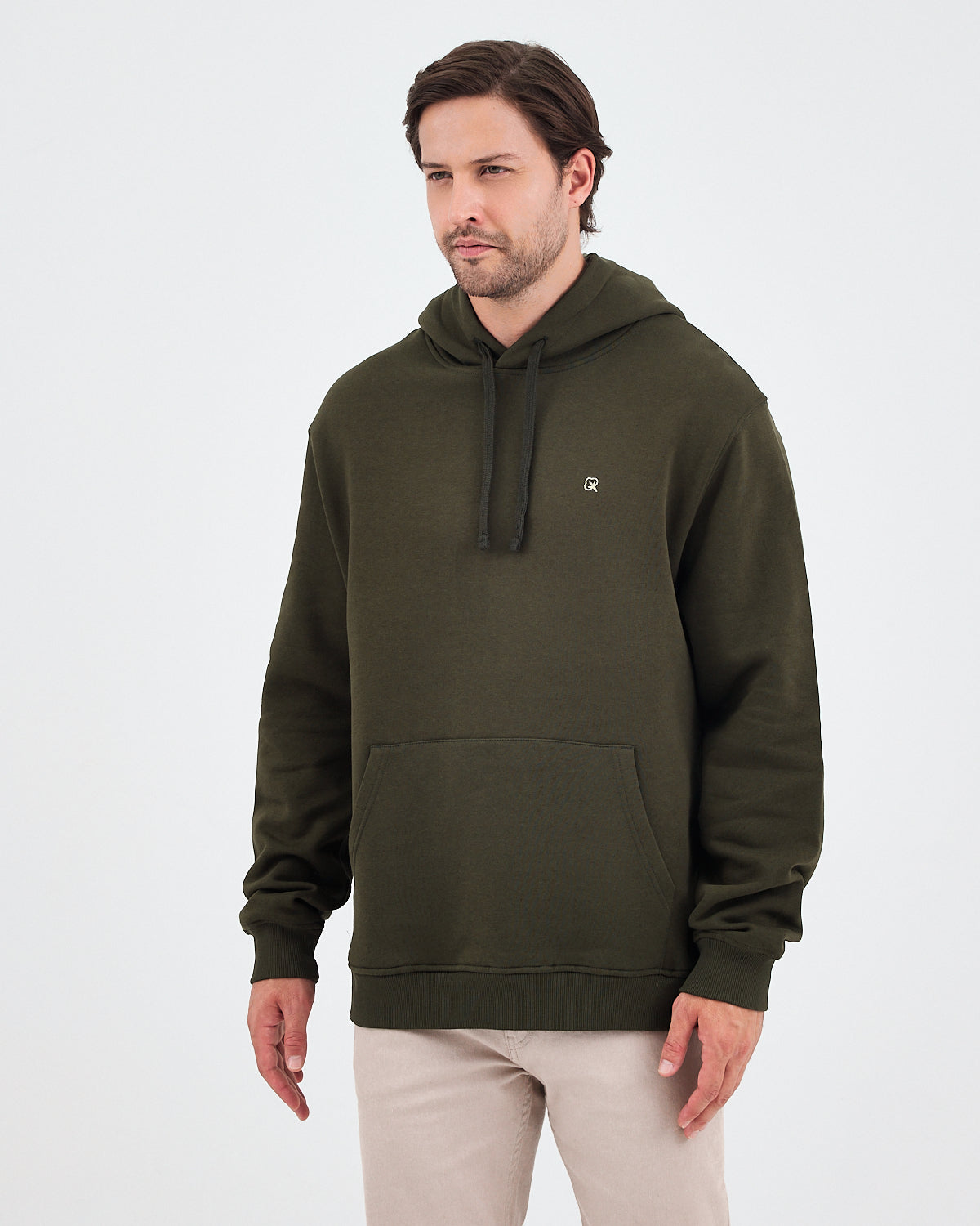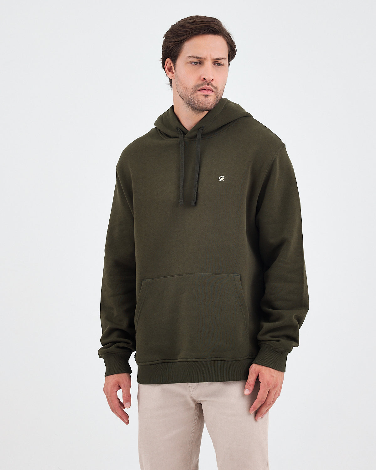 Haki renginin doğal ve güçlü tonunu yumuşak dokulu yüzeyle birleştiren bu unisex kapüşonlu sweatshirt; günlük kullanım için hem rahat hem de modern bir görünüm sunar. Göğüs kısmındaki ekru logo nakışı, koyu yeşil ton üzerine zarif bir kontrast oluşturarak ürüne sade ama dikkat çekici bir detay kazandırır. Hem kadın hem erkek için ideal bir kullanım sağlar.