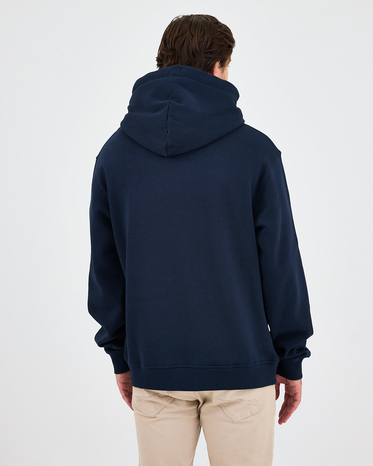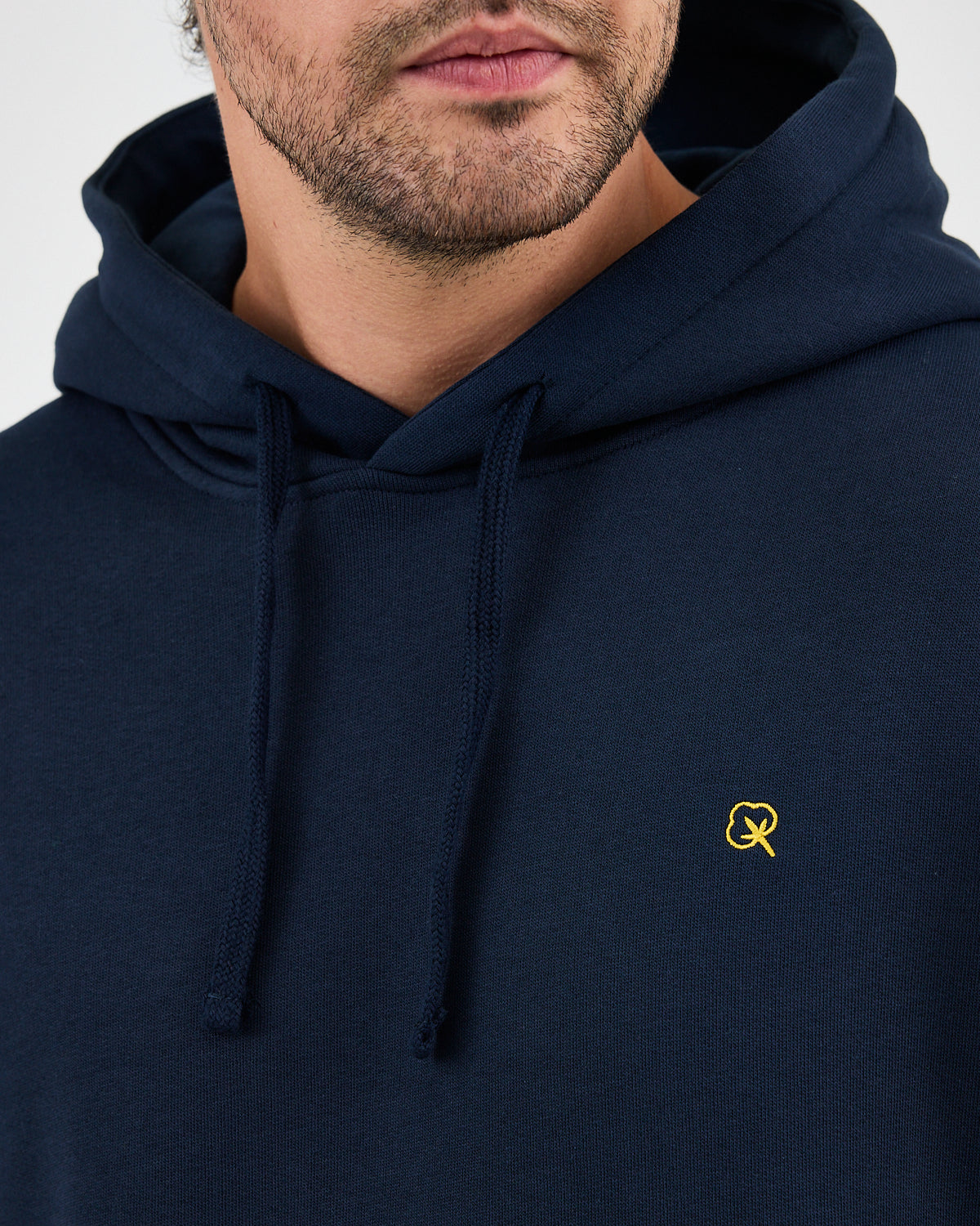 Lacivert rengin sade ve şık duruşunu yumuşak dokulu, şardonlu iç yüzeyiyle buluşturan bu kapüşonlu sweatshirt; günlük kullanımda hem konfor hem de modern bir görünüm sunar. Göğüs kısmındaki sarı renk logo nakışı, lacivert ton üzerine canlı ve dikkat çekici bir kontrast oluşturarak ürüne dinamik bir hava katar. %100 organik pamuk kumaşı nefes alabilen yapısıyla gün boyu rahatlık sağlar.