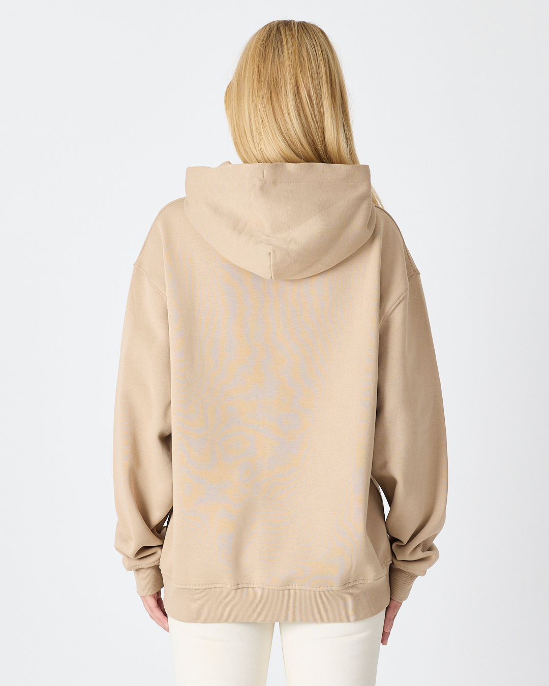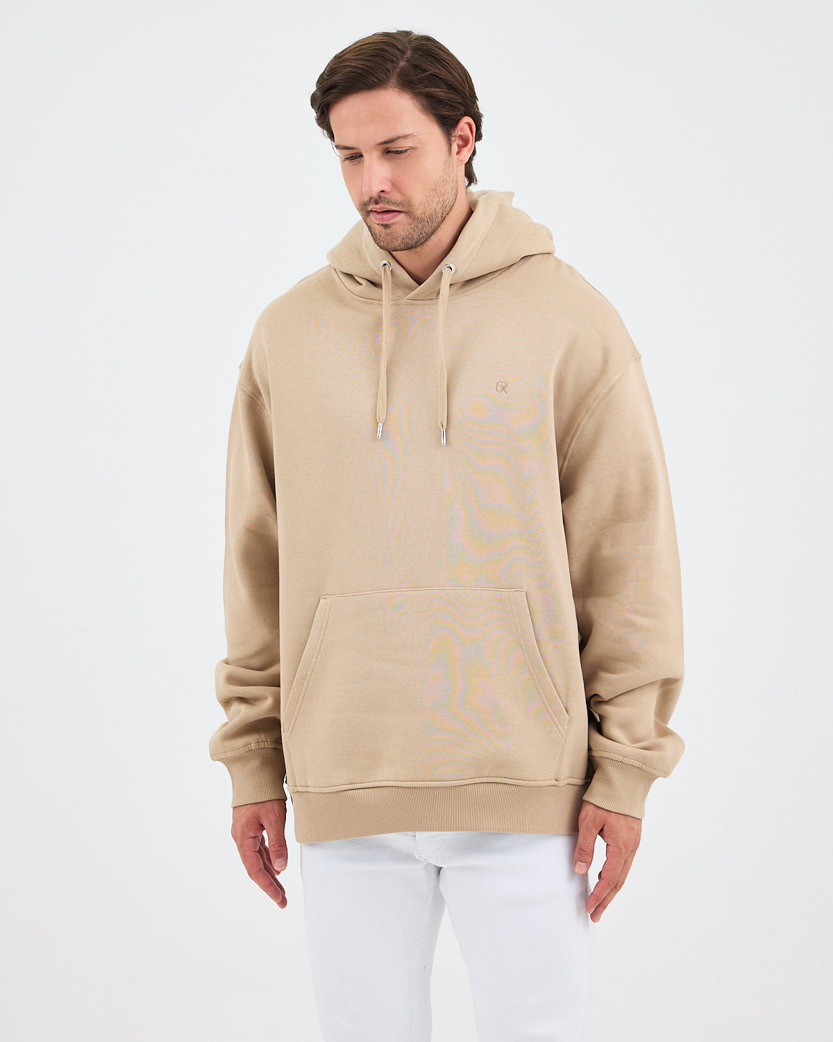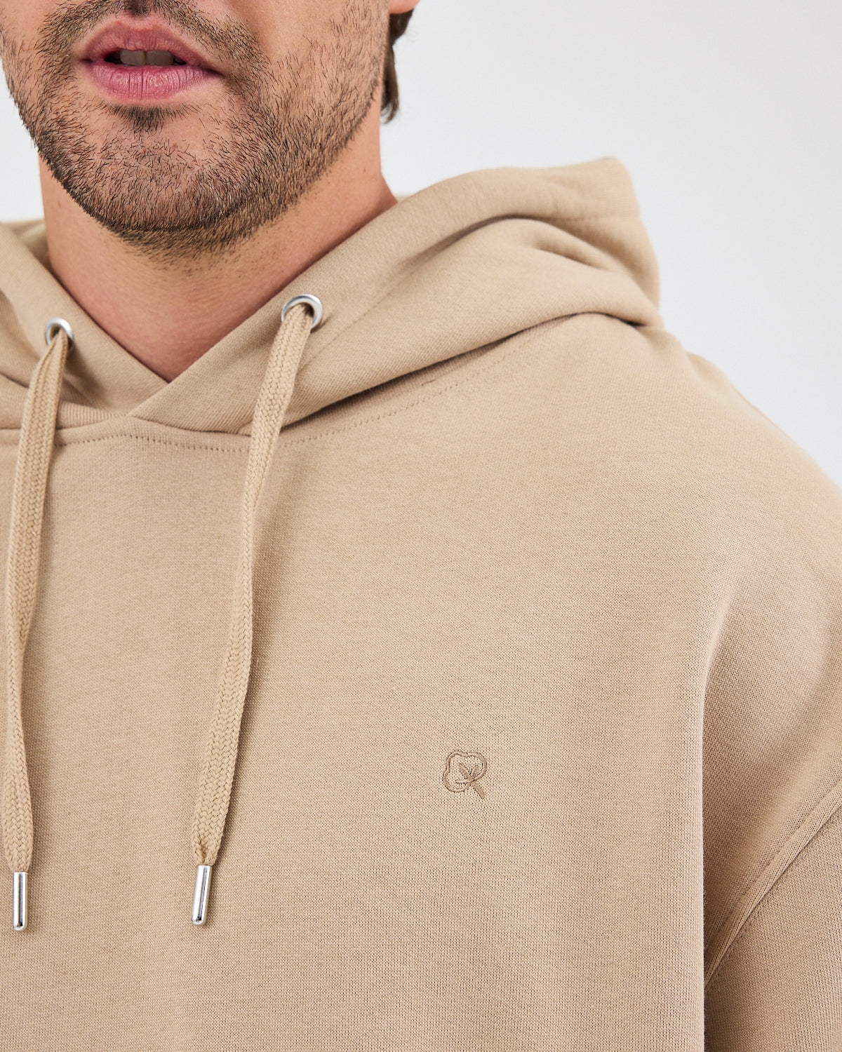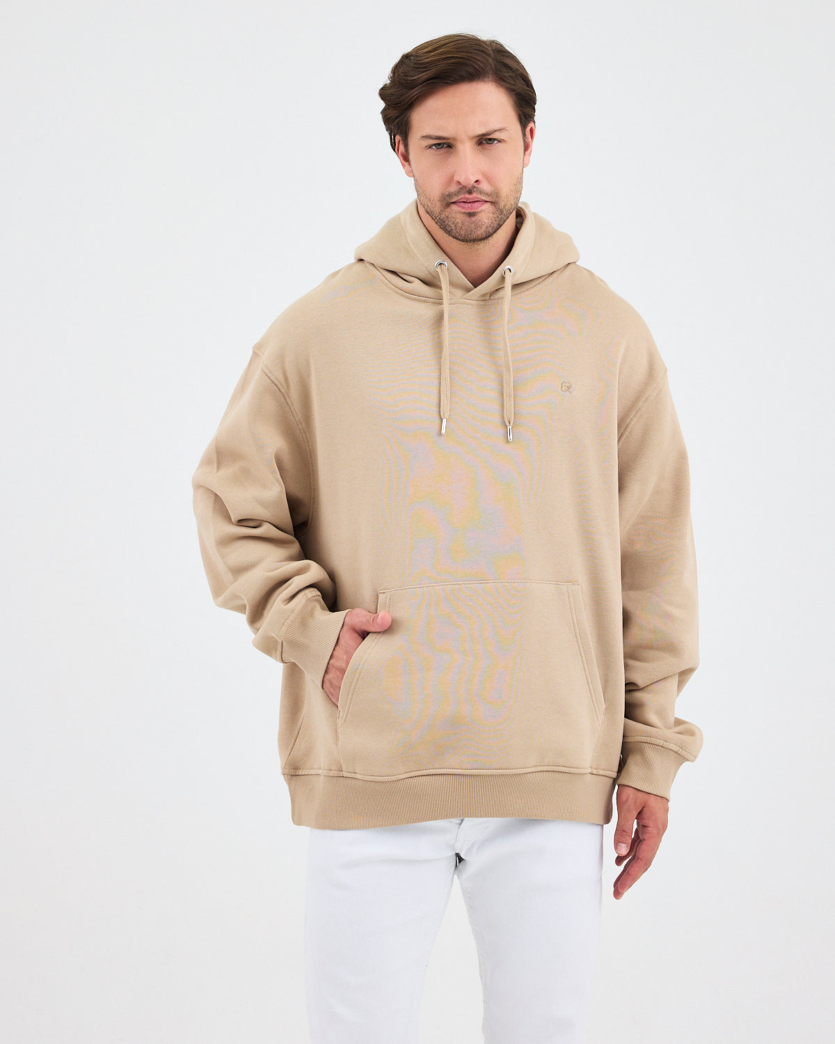 Bej renginin sofistike tonuyla tasarlanan bu unisex hoodie; oversize kesimi ve yumuşak dokulu iç yüzeyiyle konforu modern bir estetikle buluşturur. Göğüs bölümündeki bej rengine uyumlu ince tona ton logo nakış detayı, ürüne zarif ve minimal bir karakter kazandırır. Günlük stilinize sade ama etkili bir dokunuş eklemek isteyenler için ideal bir seçimdir.