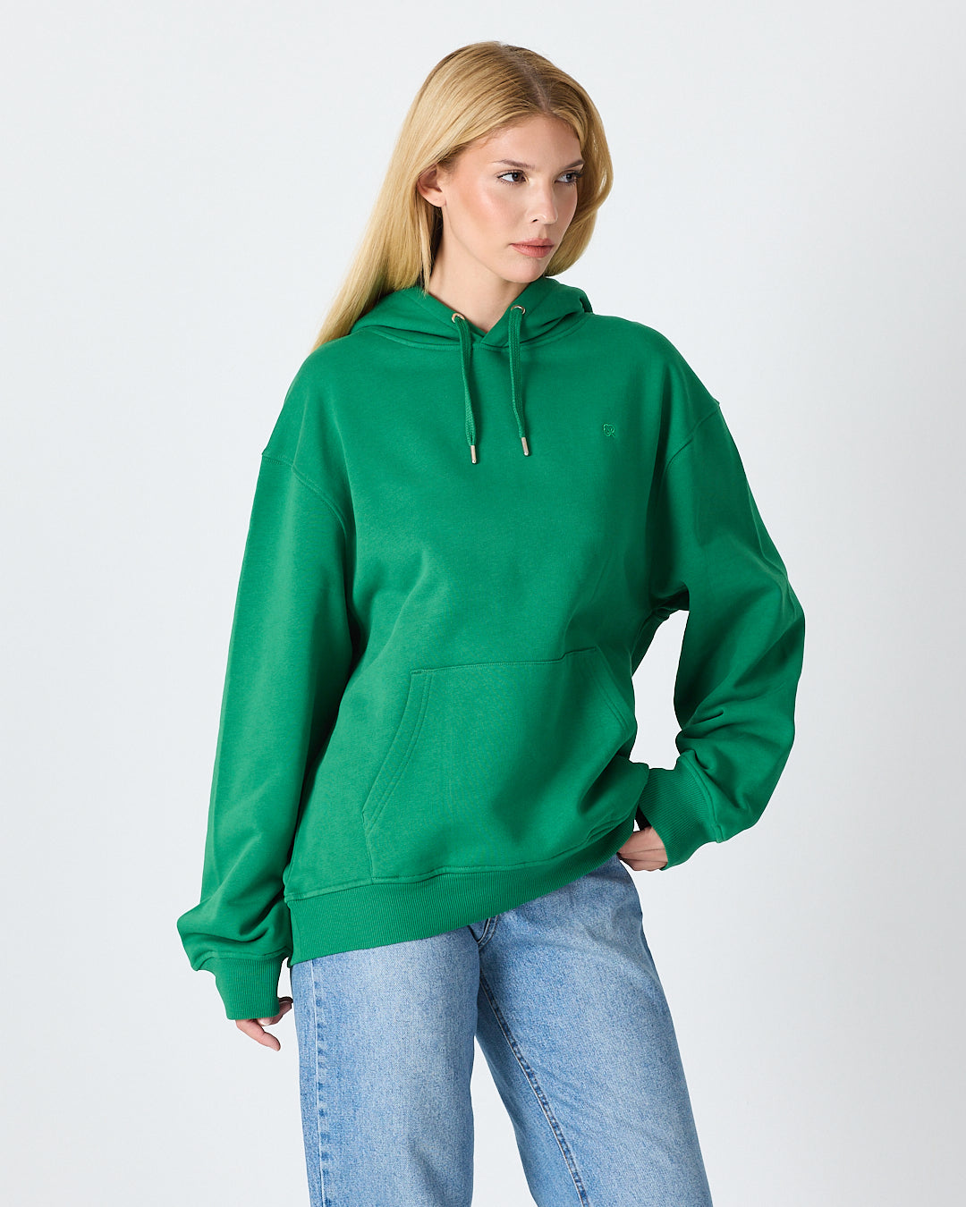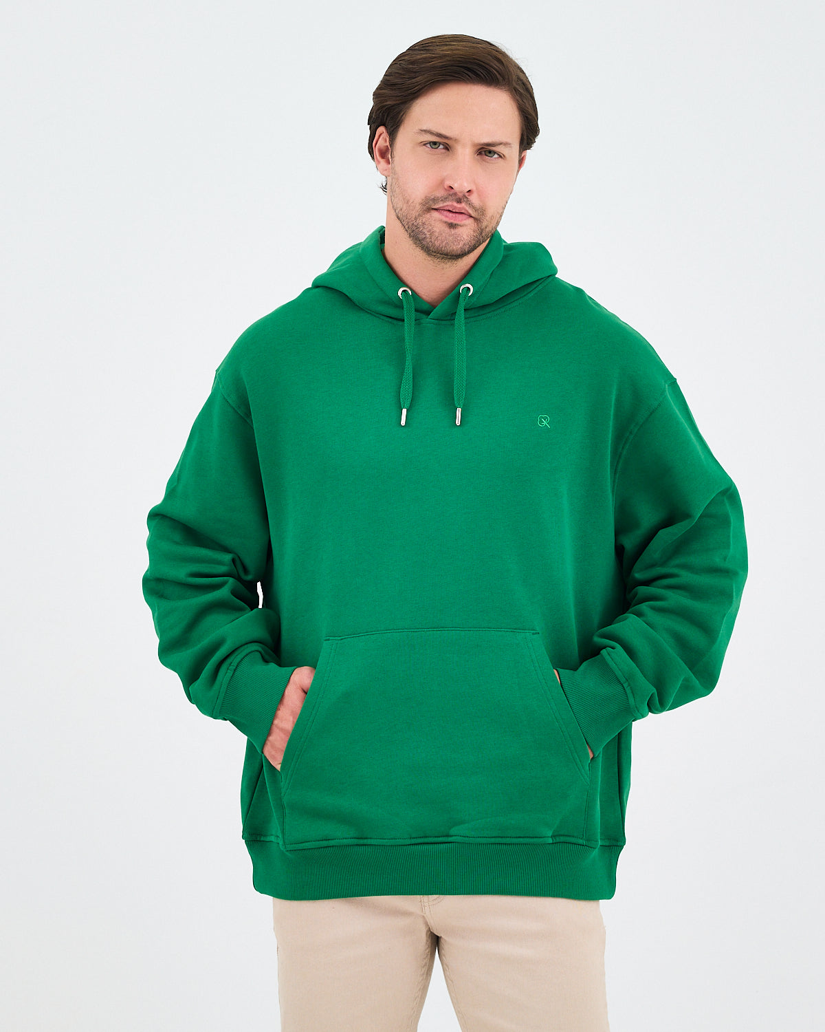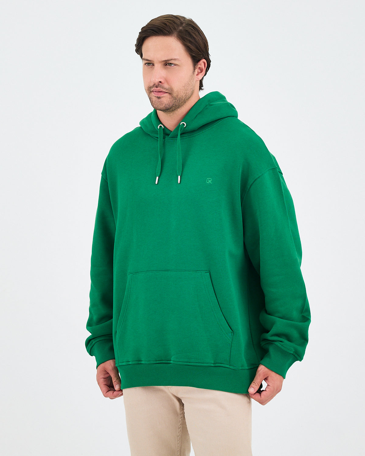 Yeşil tonuyla enerji veren bu unisex kapüşonlu sweatshirt; oversize rahat kalıbı, yumuşak dokulu iç yüzeyi ve modern tasarımıyla günlük stile konforlu bir şıklık katar. Kanguru cepli yapısı pratik kullanım sunarken, göğüs kısmındaki yeşil  logo nakış detayı ürüne minimal ve modern bir görünüm kazandırır. Dinamik sayesinde kombinlere canlılık katan zamansız bir parçadır.