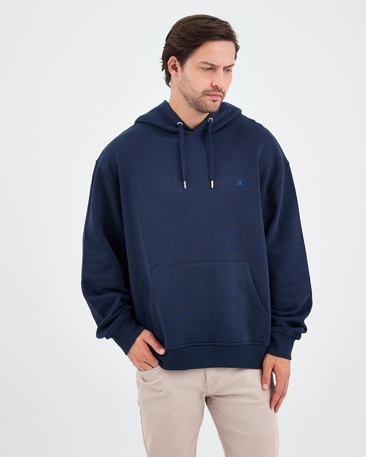 Zamansız lacivert tonu ve göğüs kısmındaki mavi baskı detayıyla sade ama modern bir görünüm sunan bu oversize sweatshirt; günlük kombinlerin vazgeçilmez parçası olmaya aday. Yumuşak ve sıcak tutan dokusuyla gün boyu konfor sağlar; spor şıklık ya da casual tarz için ideal bir seçimdir.