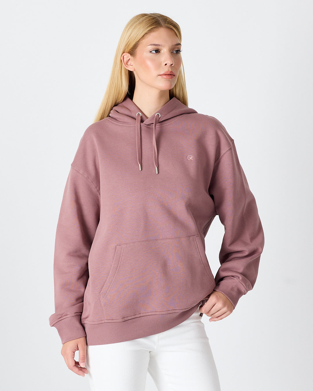 Gül kurusunun soft ve zarif tonuyla öne çıkan bu unisex kapüşonlu sweatshirt; oversize rahat kalıbı, yumuşak dokulu iç yüzeyi ve minimal tasarımıyla günlük stile modern bir dokunuş katar. Kanguru cepli yapısı pratik kullanım sunarken, göğüs kısmındaki gül kurusuna uyumlu tona ton logo nakış detayı ürüne sade ama etkileyici bir görünüm kazandırır. Soft rengi sayesinde tüm yıl kolayca kombinlenebilen zamansız bir parçadır.