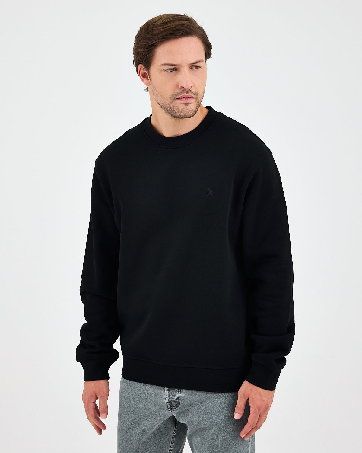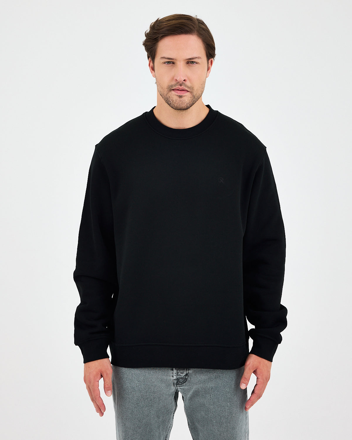Siyah rengin zamansız ve modern duruşunu yumuşak dokusuyla birleştiren bu unisex sweatshirt; relaxed fit rahat kalıbı, yumuşacık şardonlu iç yüzeyi ve siyah tona ton nakış detayıyla hem şık hem de konforlu bir görünüm sunar. Günlük kullanım için ideal olan bu model, minimal tasarımı sayesinde her kombinle kolayca uyum sağlar.