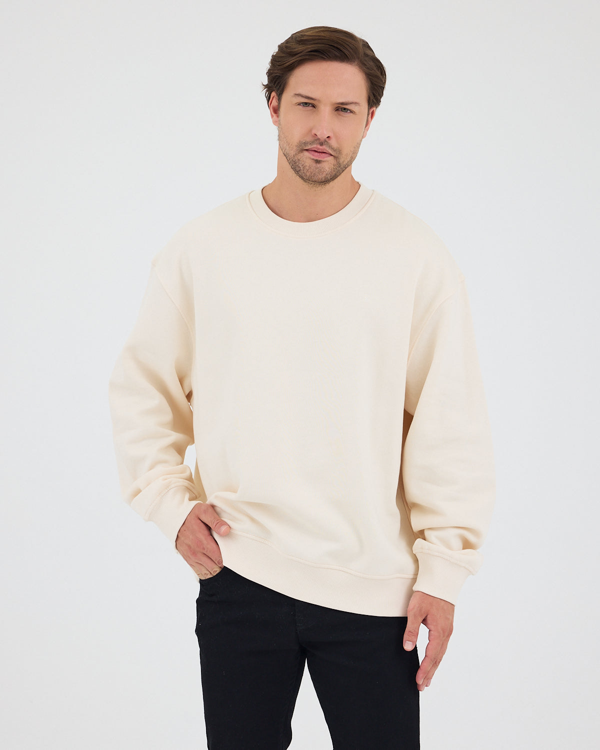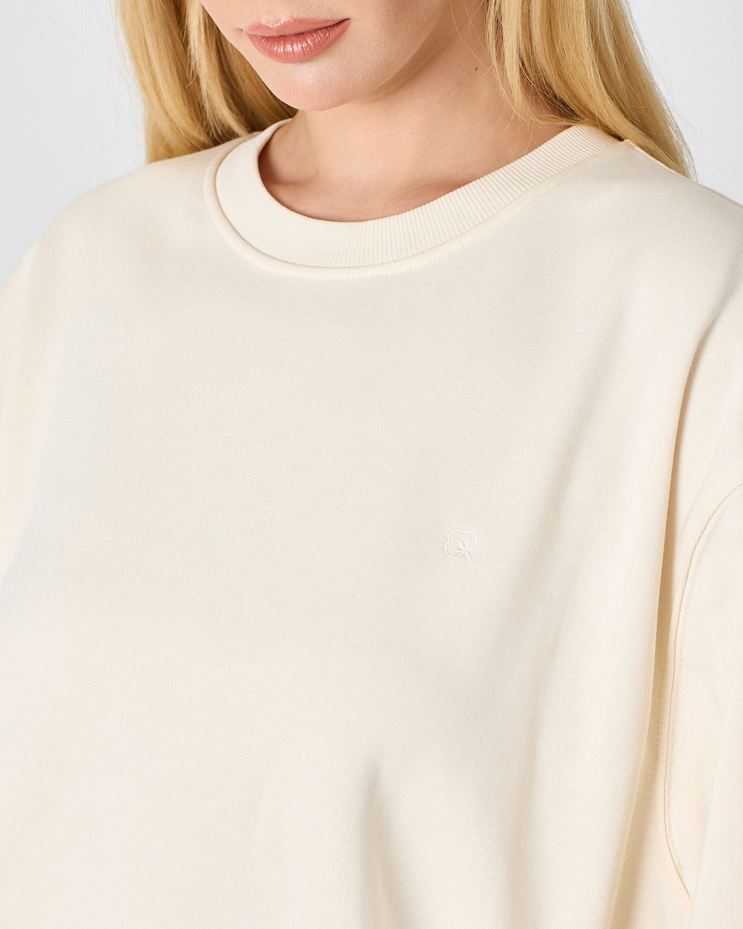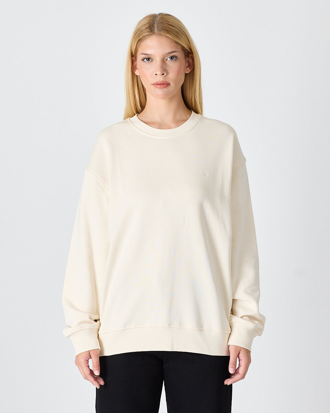 Oversize tasarımıyla rahat ve modern bir görünüm sunan bu sweatshirt; şardonlu iç yüzeyi, bisiklet yaka formu ve ekru tonlarında tona ton logo nakış detayıyla sade ve modern bir görünüm sunar.