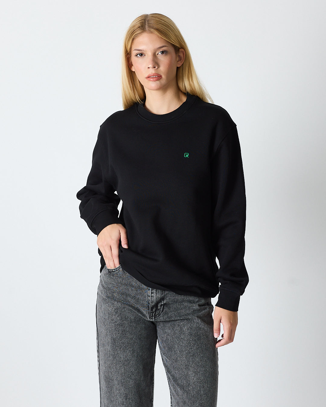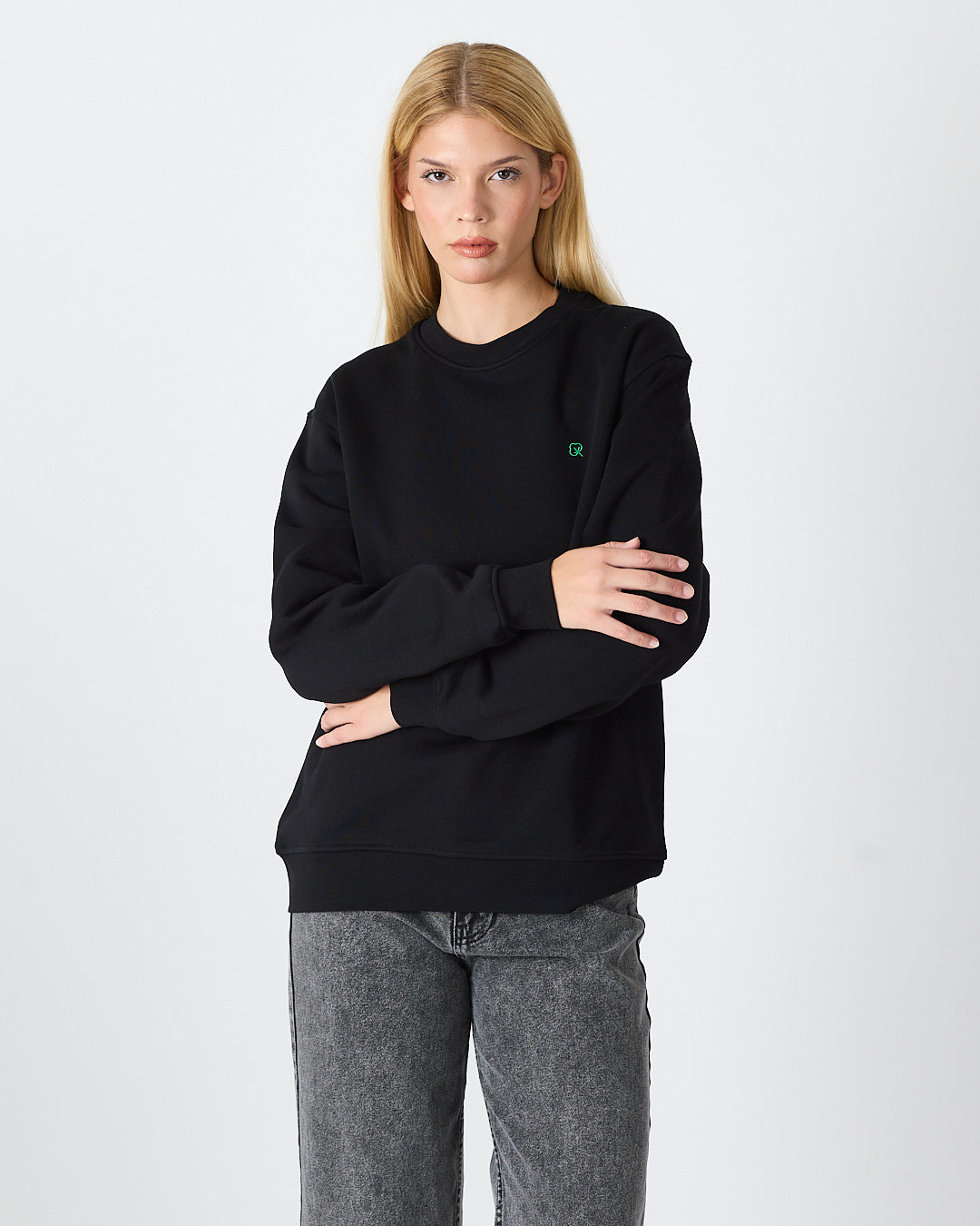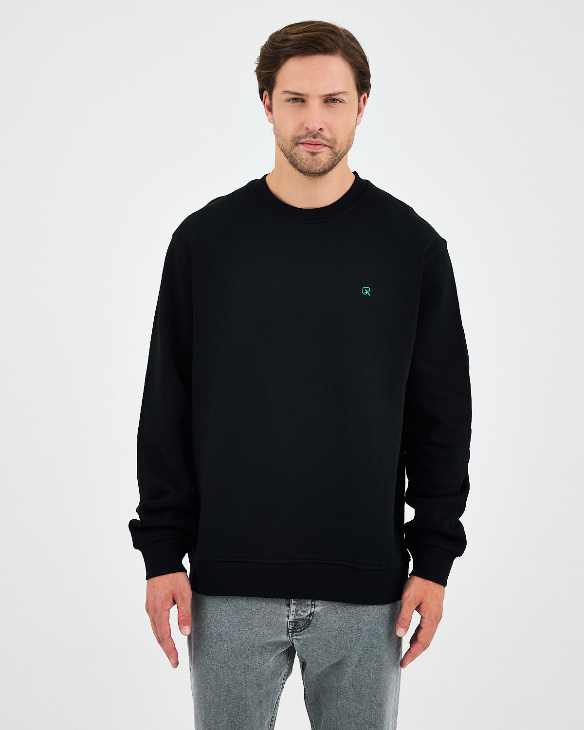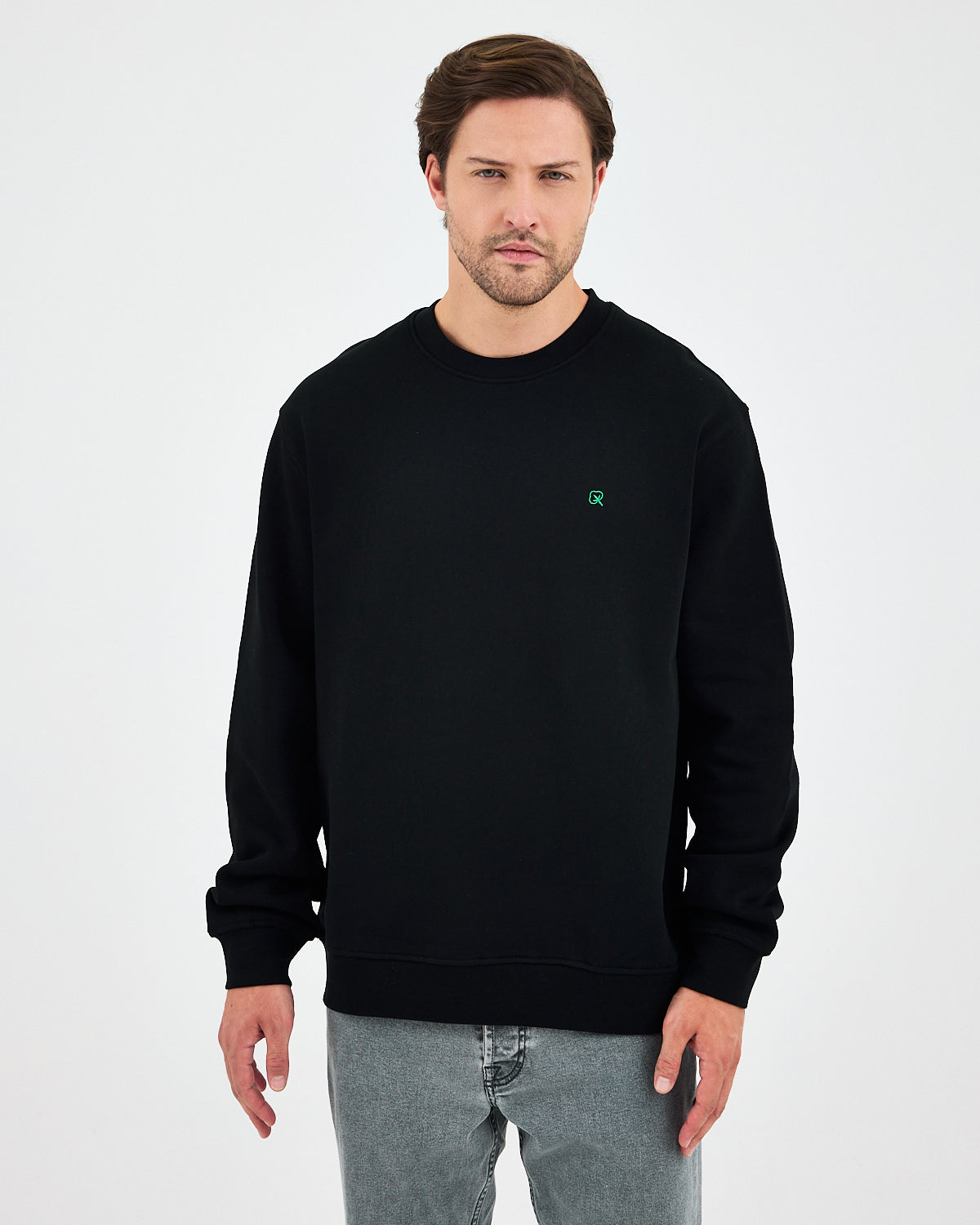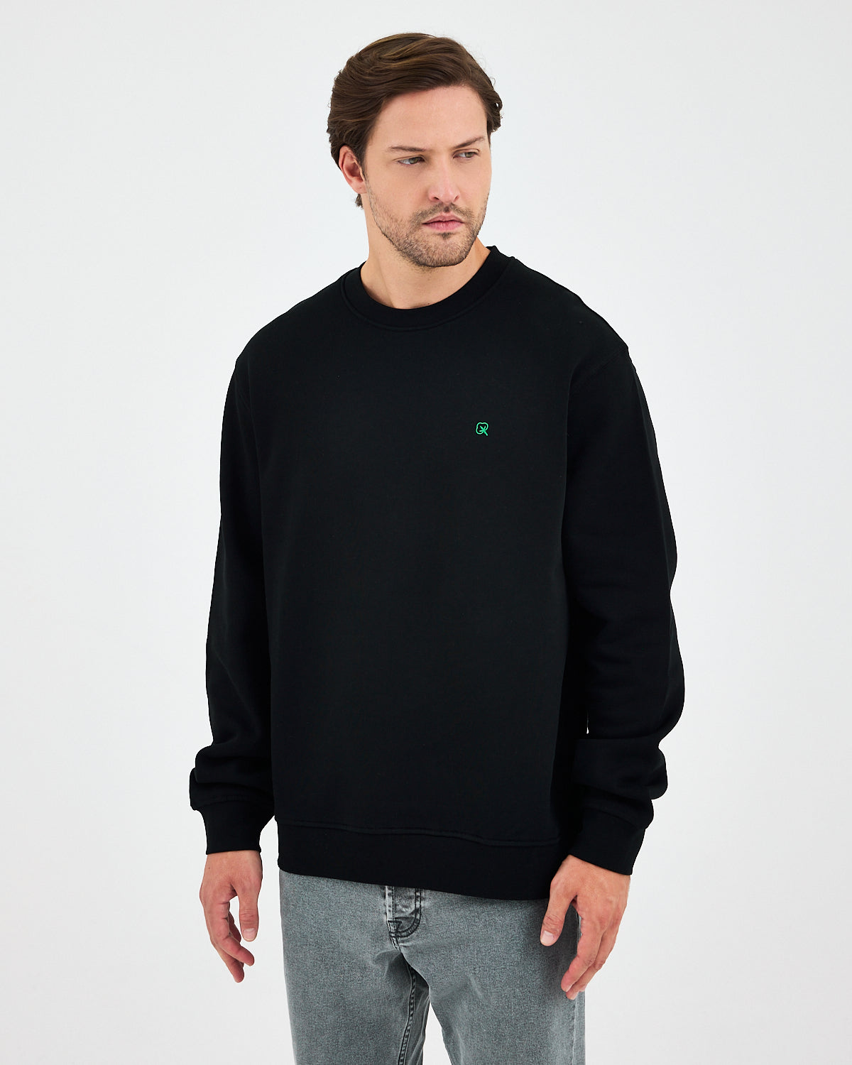 Siyah rengiyle zamansız bir stile sahip olan bu unisex sweatshirt, göğüs kısmındaki yeşil logo nakış detayıyla modern ve dikkat çekici bir görünüm sunar. Rahat kesimi ve yumuşak dokusuyla gün boyu konfor sağlar; günlük kombinlerden spor görünümlere kadar her tarza uyumlu bir parçadır.
