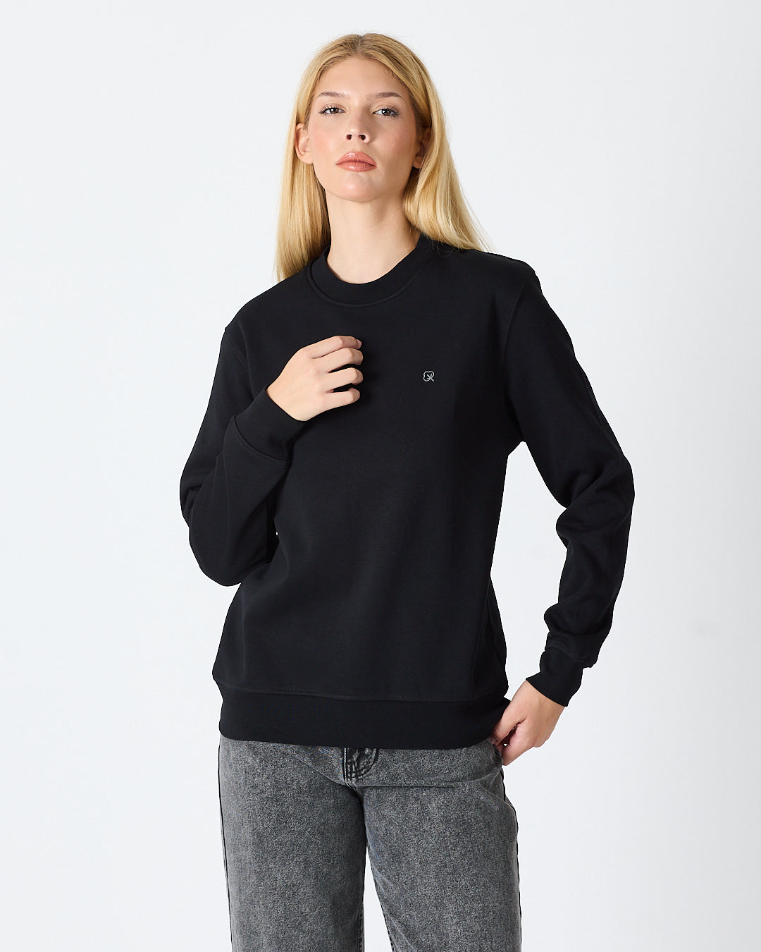 Siyah rengiyle zamansız ve modern bir stile sahip olan bu unisex sweatshirt, göğüs kısmındaki gümüş nakış logo detayıyla sade ama dikkat çekici bir görünüm sunar. Yumuşak dokusu ve rahat kesimi sayesinde gün boyu konfor sağlar; günlük kombinlerden şehir stiline kadar her tarza kolayca uyum sağlar.
