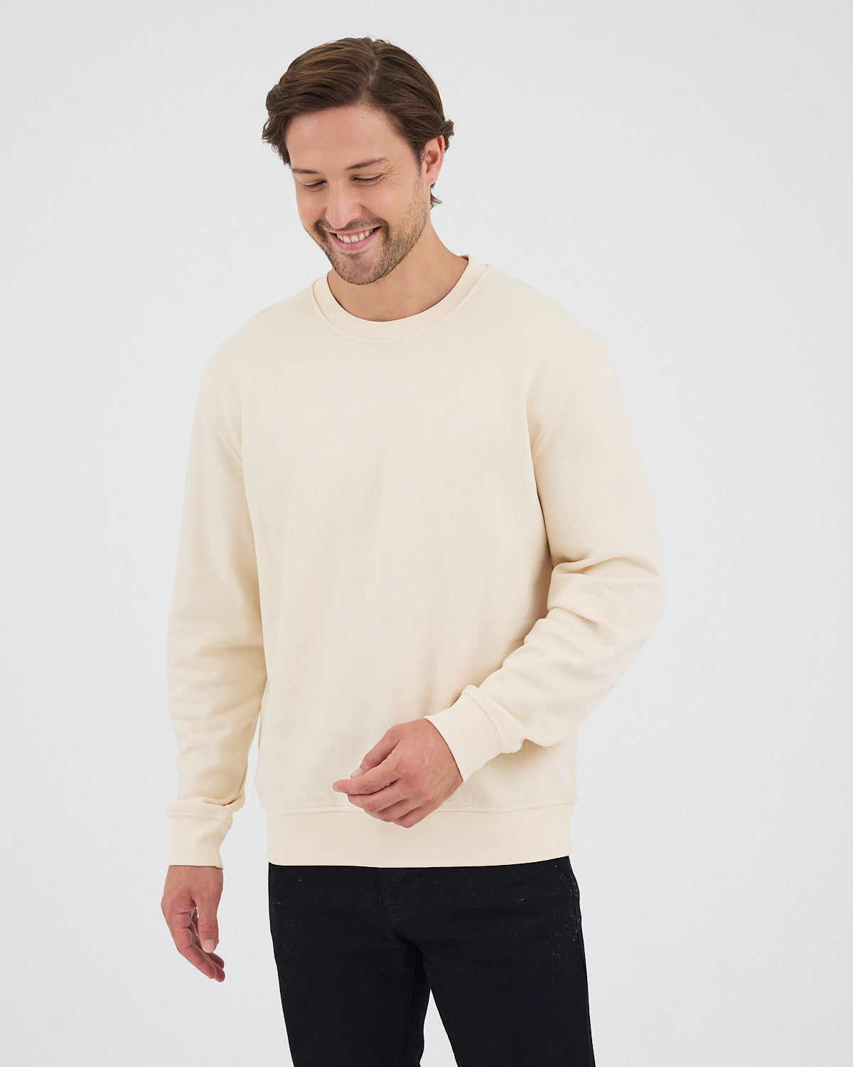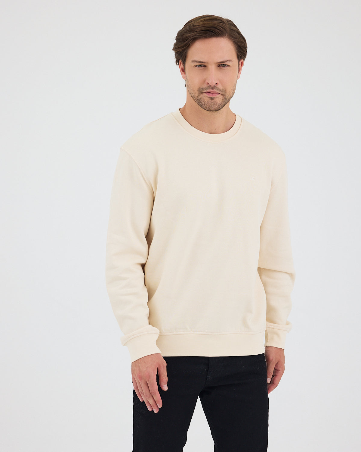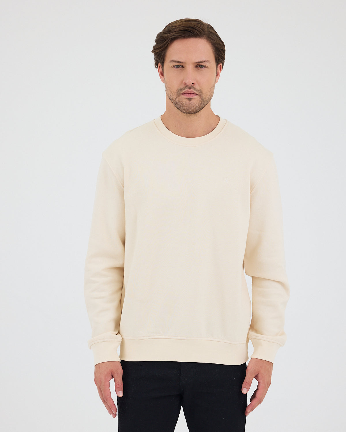 Ekru rengin doğal ve sade tonunu yumuşak dokulu pamuklu yapısıyla birleştiren bu sweatshirt; bisiklet yaka formu, standart kalıbı ve ekru tona ton logo nakış detayıyla hem modern hem de minimal bir görünüm sunar. Günlük kullanım için ideal olan model, hafif yapısı ve konforlu kesimi sayesinde her mevsimde rahatlıkla tercih edilebilir.